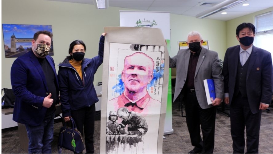 2022年2月28日,加拿大美洲电视台(CATV)台长高秀山(Philip Gao)、副台长小山(David Valley)、广告设计师(Anna Zhou)、航拍剪辑师陈彦宏(Michael Chen), 一行四人,