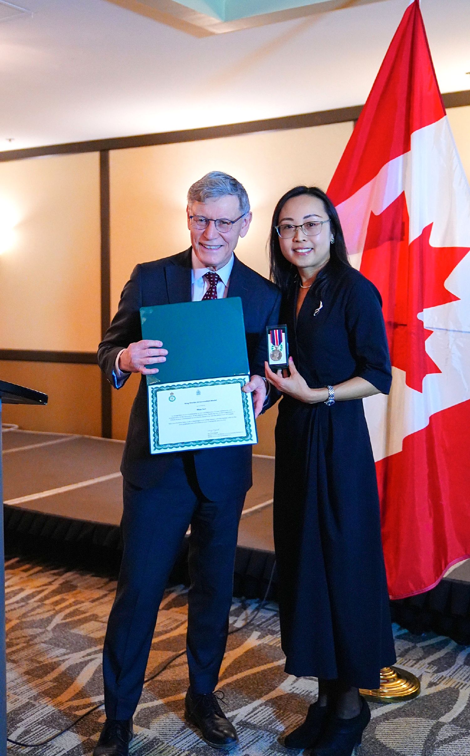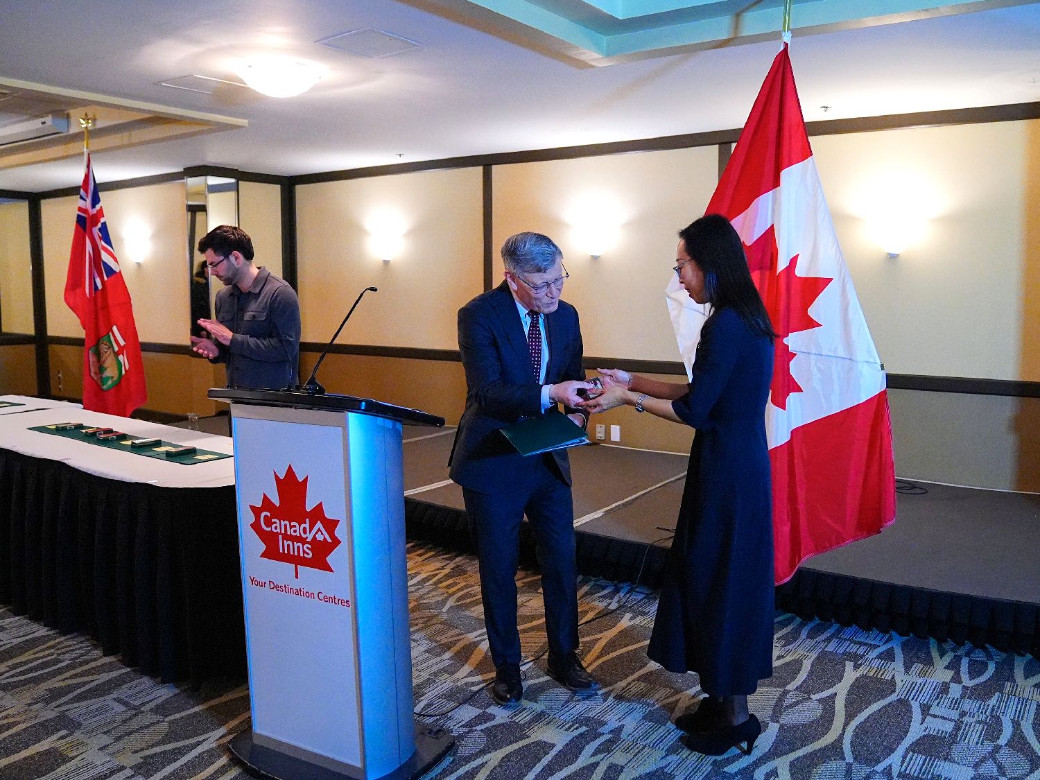 2025年3月8日下午,在温尼伯Canada Inn会议大厅,由联邦政府南区议员Terry Duguild主持了隆重的颁奖仪式,向在温尼伯南区的各个领域里的做出杰出贡献的三十位代表颁发英国国王查尔斯三世加冕荣誉勋章。