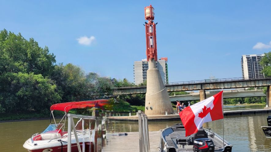 国庆日在TheForks游船上飘扬的加拿大国旗