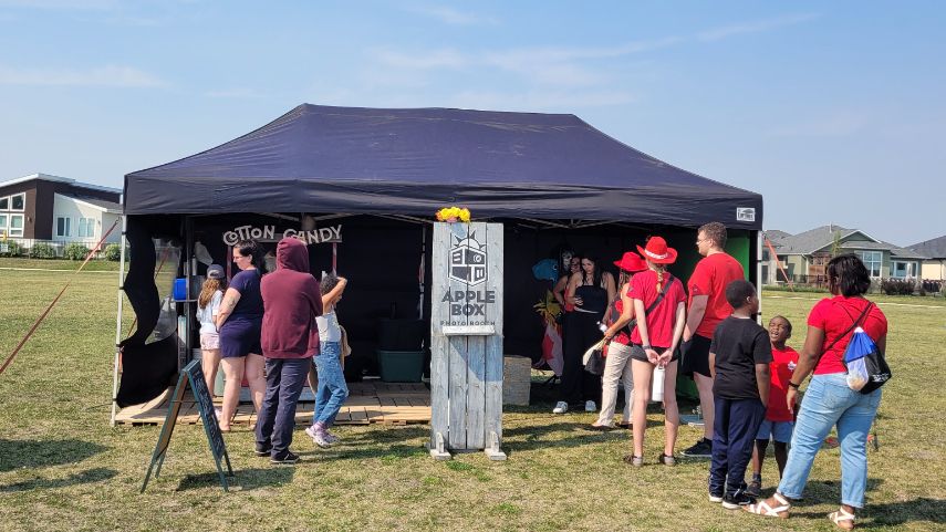 人们在SageCreek的RonDuhamelPark的活动现场购买棉花糖、和快速照相