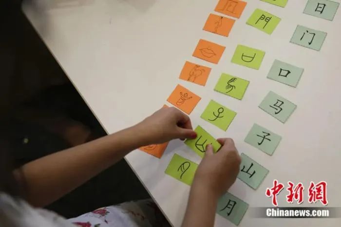 资料图:费城顶好中文学校老师用象形图案教孩子们认识汉字。中新社记者廖攀摄