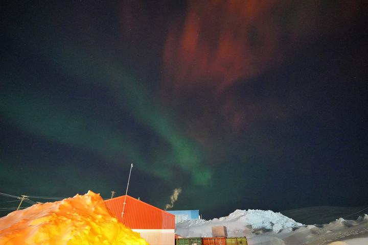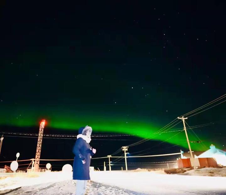 经常天一黑,抬头就能看到彩色的极光在天上飘动着,非常美丽。