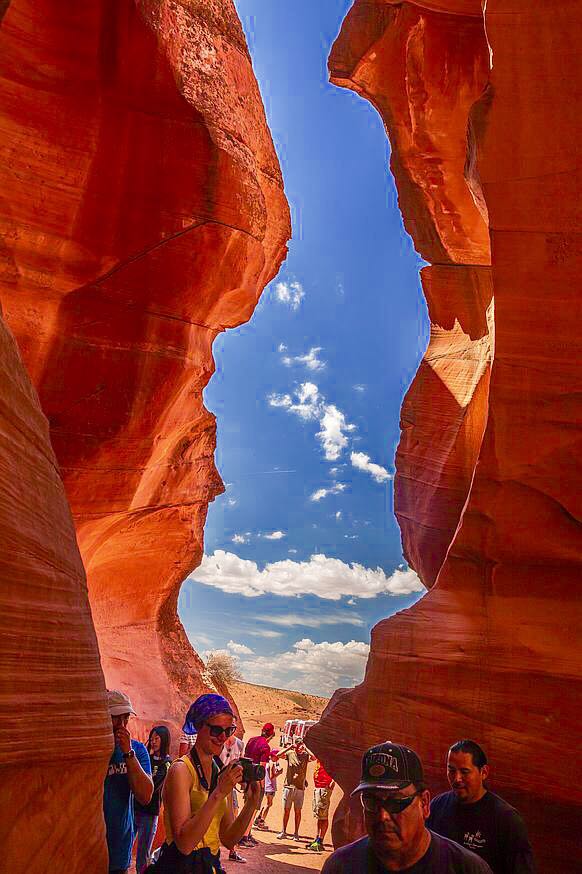 我们越走光线越暗。由于不准带三脚架。在昏暗的峡谷里,熙熙攘攘的人群中,