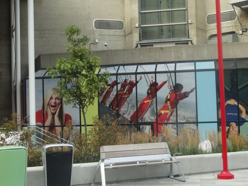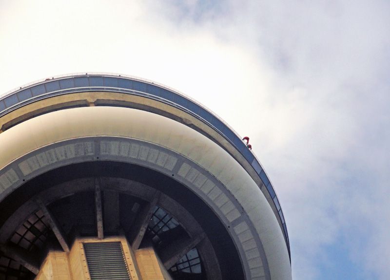 从下网上看,看看站在塔边缘上的勇士,真没几个人,这里也是世界一流的娱乐和餐饮胜地,更是所有来多伦多观光的游客必到的景点。