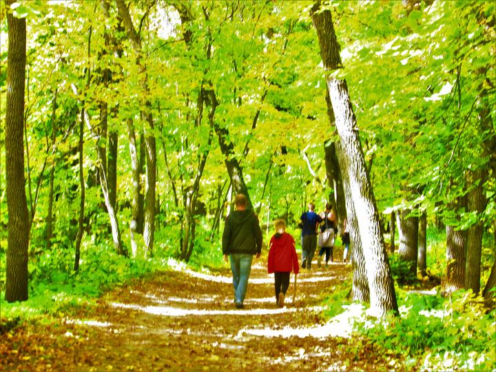游客们可以沿着长着各种各样的树林中的小路穿行,