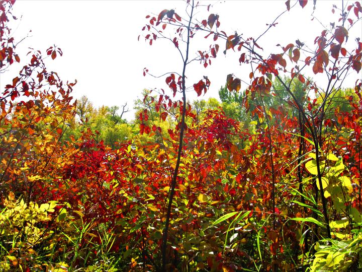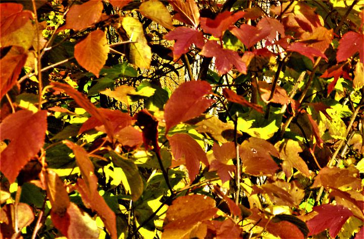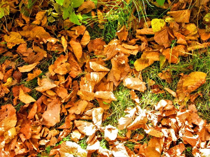 由于树种不同,枯叶也变的五颜六色,显得格外漂亮,