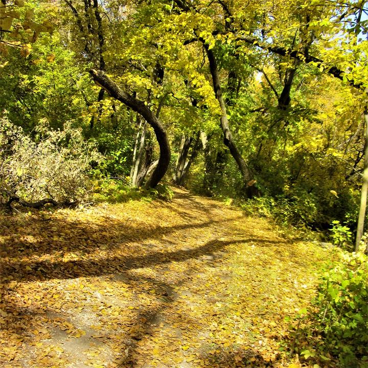 小路几乎被掉落的枯叶盖满,