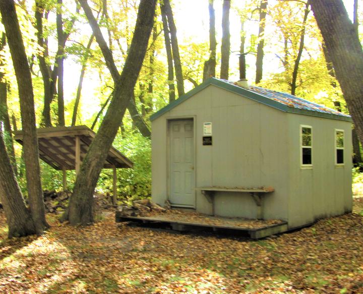 沿小路往深处走,路旁有一座小木屋,是冬季在这里滑雪迷路,冻死在这里的亲人盖的,是为防止在发生这样的悲剧,为滑雪者修的避难小木屋,里面有炉灶等取暖用品,旁边的小棚子,有劈好的木材。