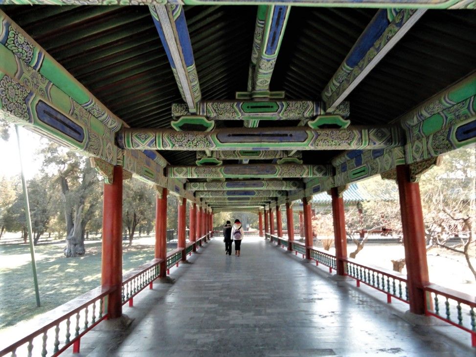 天坛是我国和世界上现存最大的古代祭祀性建筑群,这是长廊,