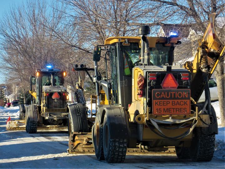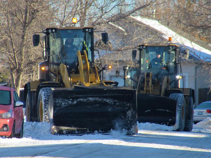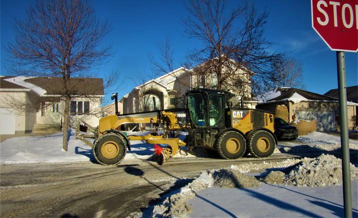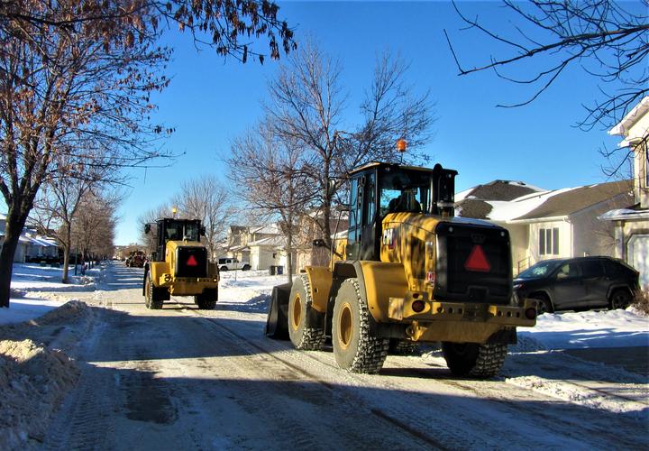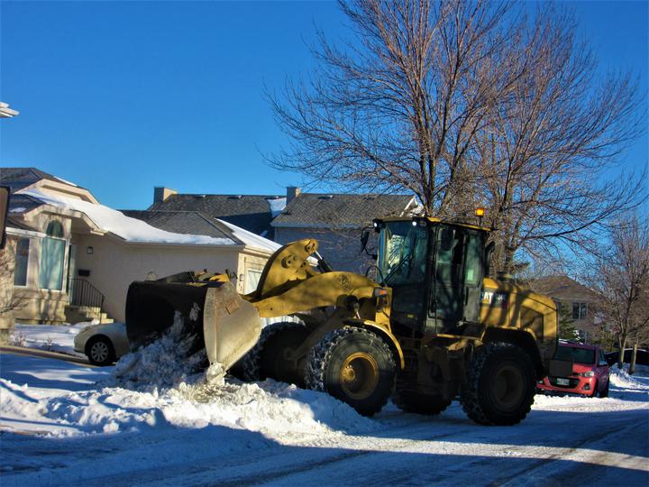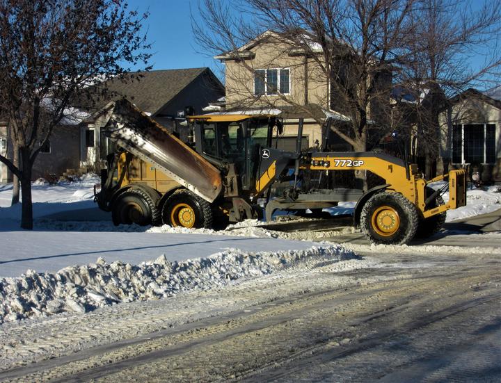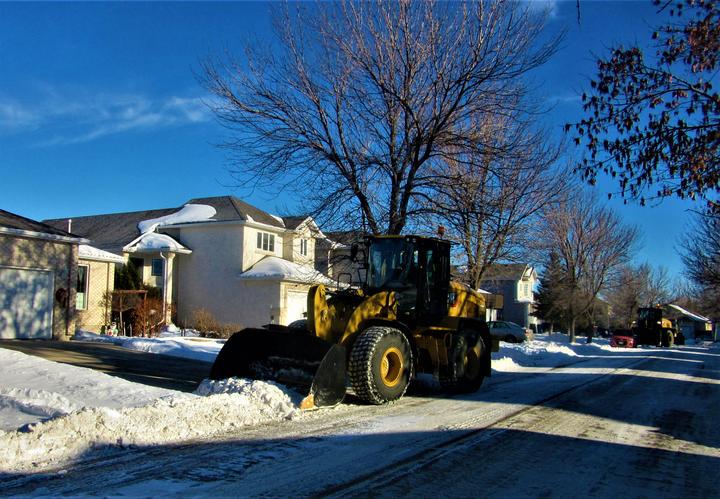 入冬温尼伯市接连下雪,主市内干道的雪随时清理,随后,扫雪车可以来居民区清雪了