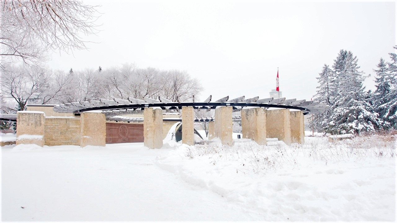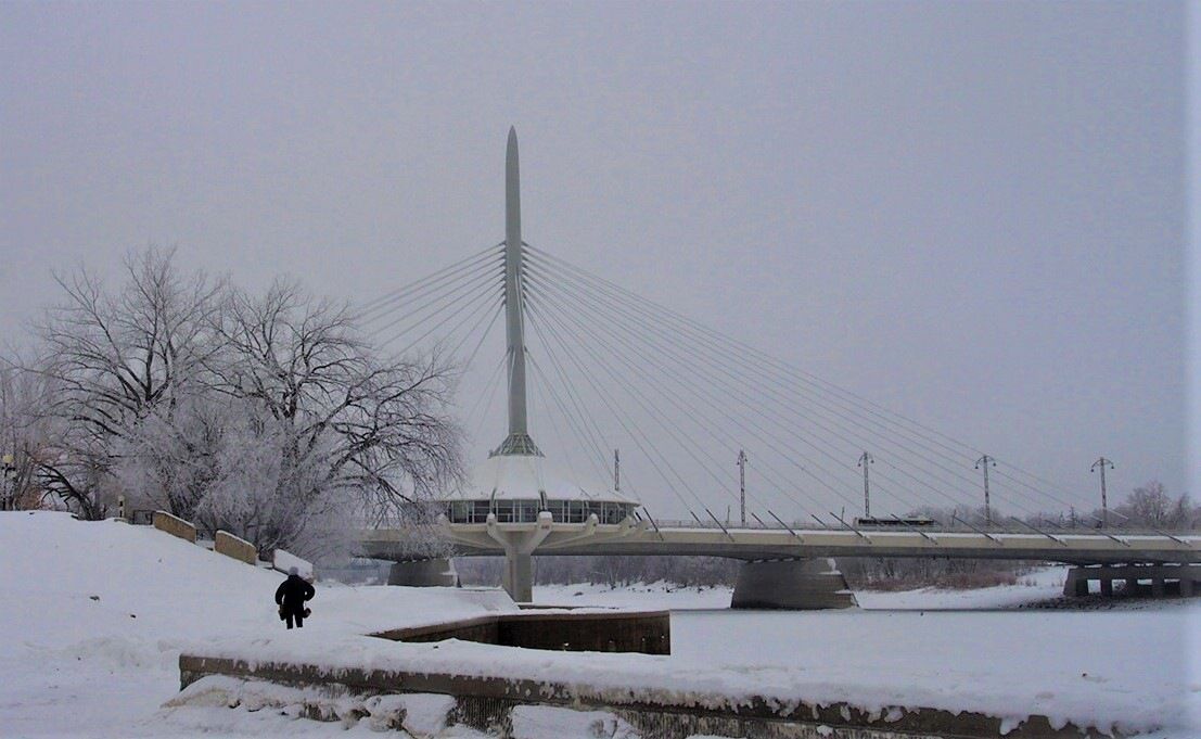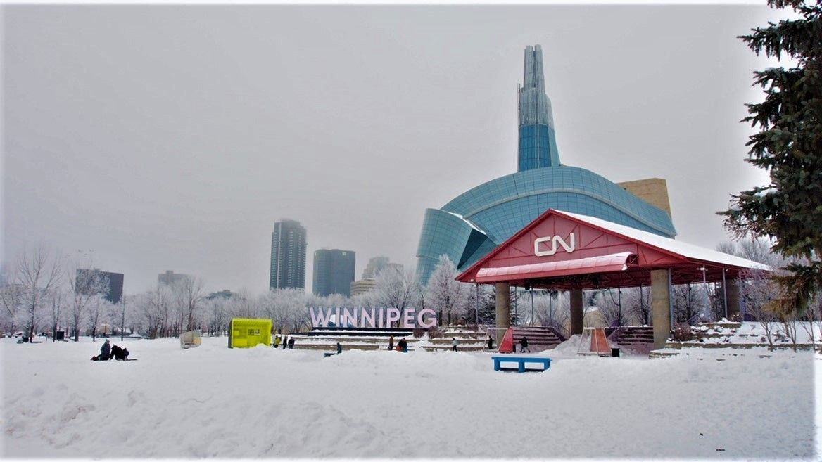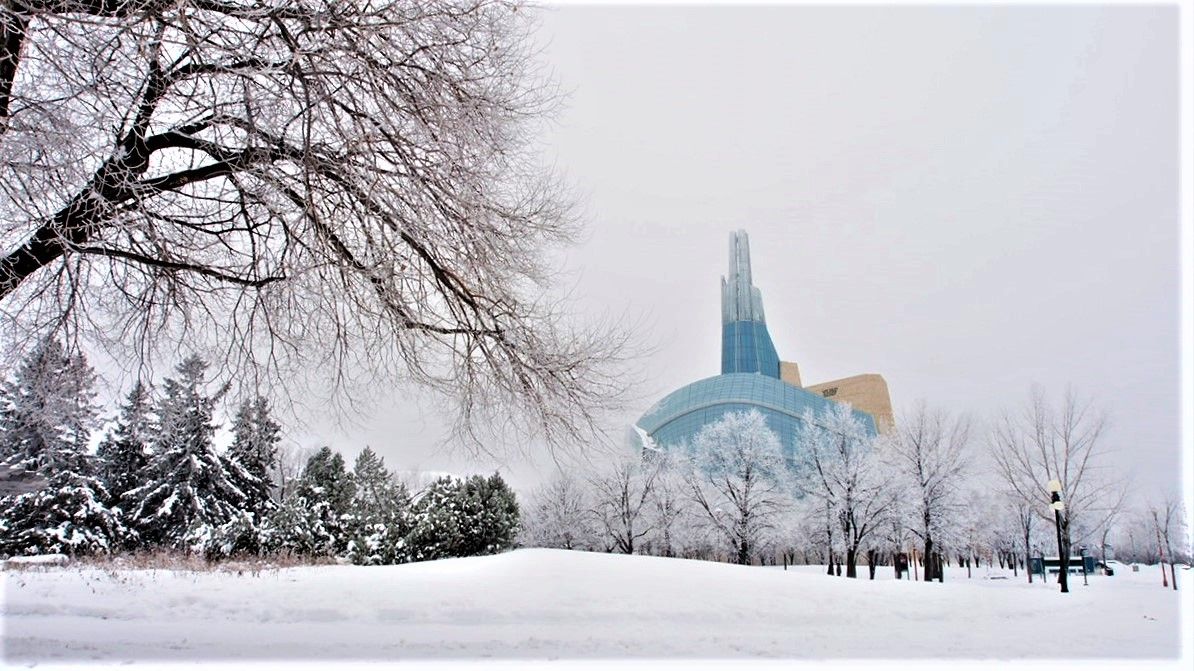 这里耸立的是温尼伯著名的时代博物馆,被挂着雾凇的树木包绕,显得格外庄重,