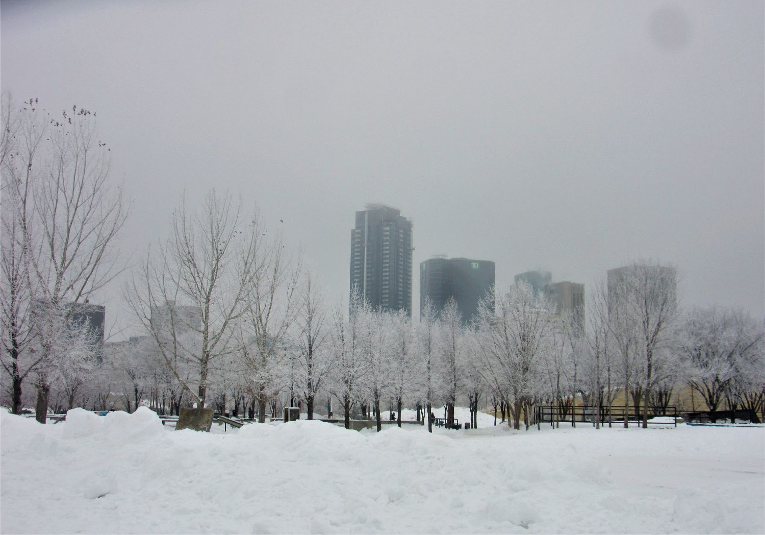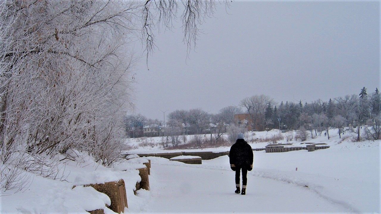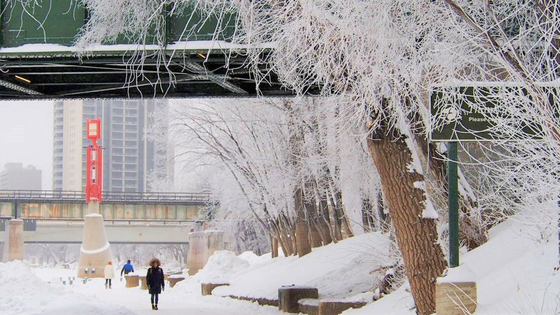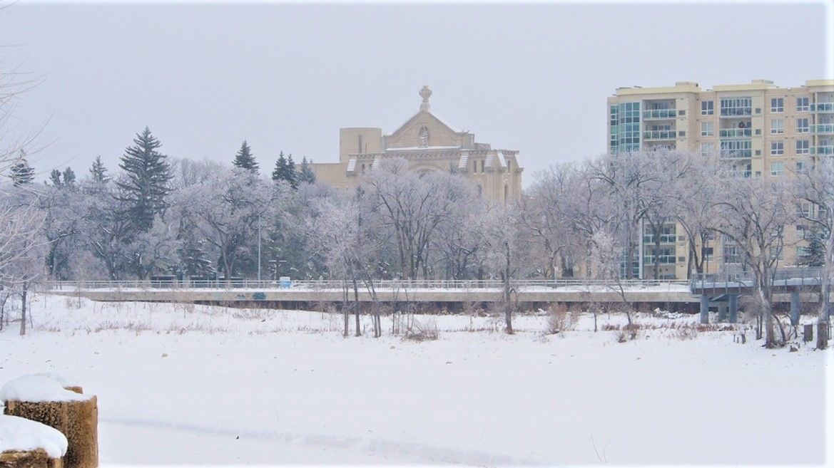 这里耸立的是温尼伯著名的时代博物馆,被挂着雾凇的树木包绕,显得格外庄重,