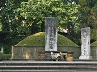 大殿右格修建的岳飞墓,墓呈圆形,墓碑上写“宋岳鄂王墓”字样。旁有其子岳云墓。