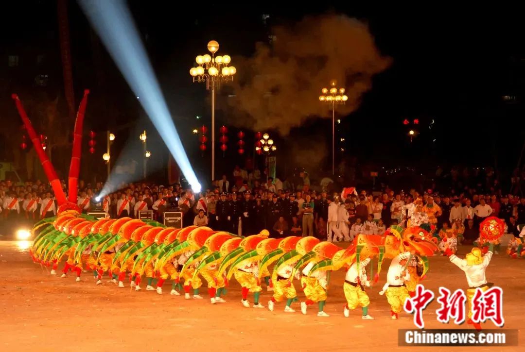 夜间表演时,偌大的蜈蚣俯仰穿梭,