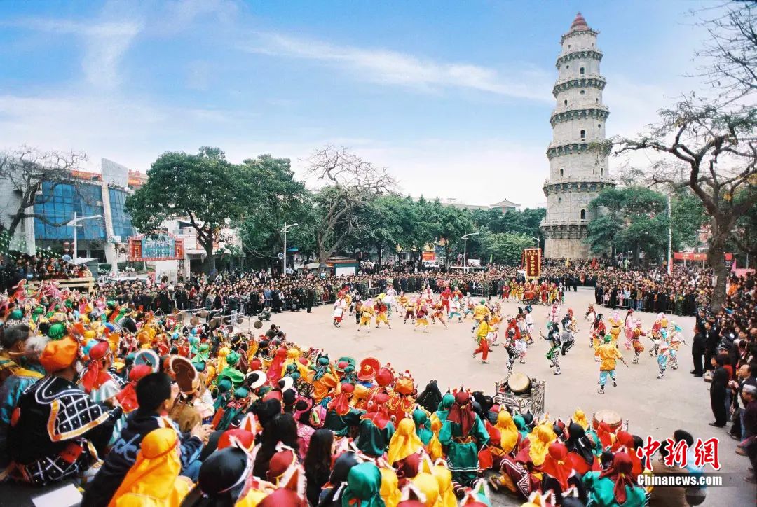 文光塔前潮阳英歌舞表演。柯晓摄