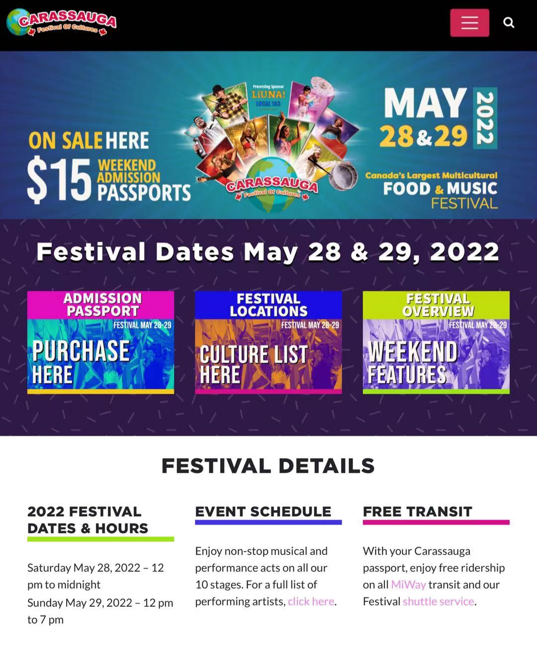 因为Covid-19疫情, Carassauga停办了两年。随着加拿大疫情形势好转,三月开始禁令取消,生活逐步恢复正常,五月28日(星期六)、29日(星期天)Carassauga恢复举办,重新回归到人们的现实生活。今年的Carassauga是第37届,共有25个国家参与(比疫情前2019年那届少了6个国家)。不同国家和地区不同民族的特色性文化、风情、服饰和食品,令访客们饱了眼福和口福。