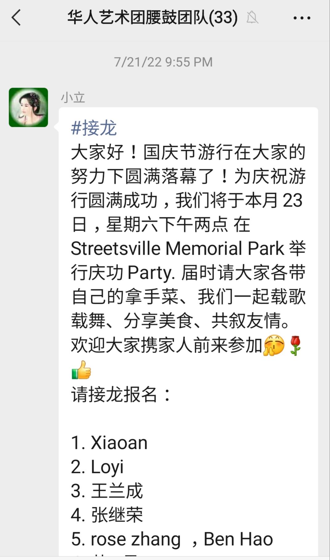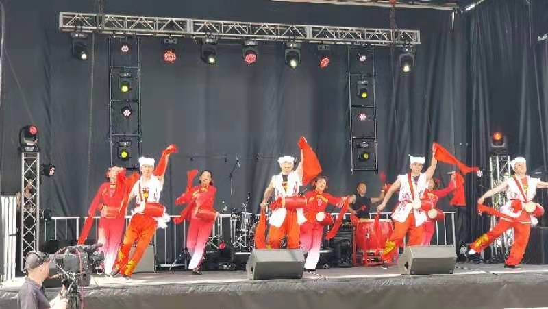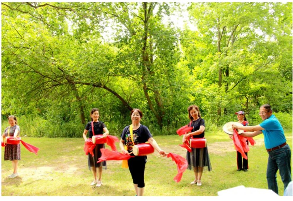 他们的欢声笑语中,除了有疫情解禁、重归自由的心灵释放,更有欢庆密西沙加华人艺术团在7月1号国庆大游行中成功表现----作为游行重头戏的腰鼓方阵,