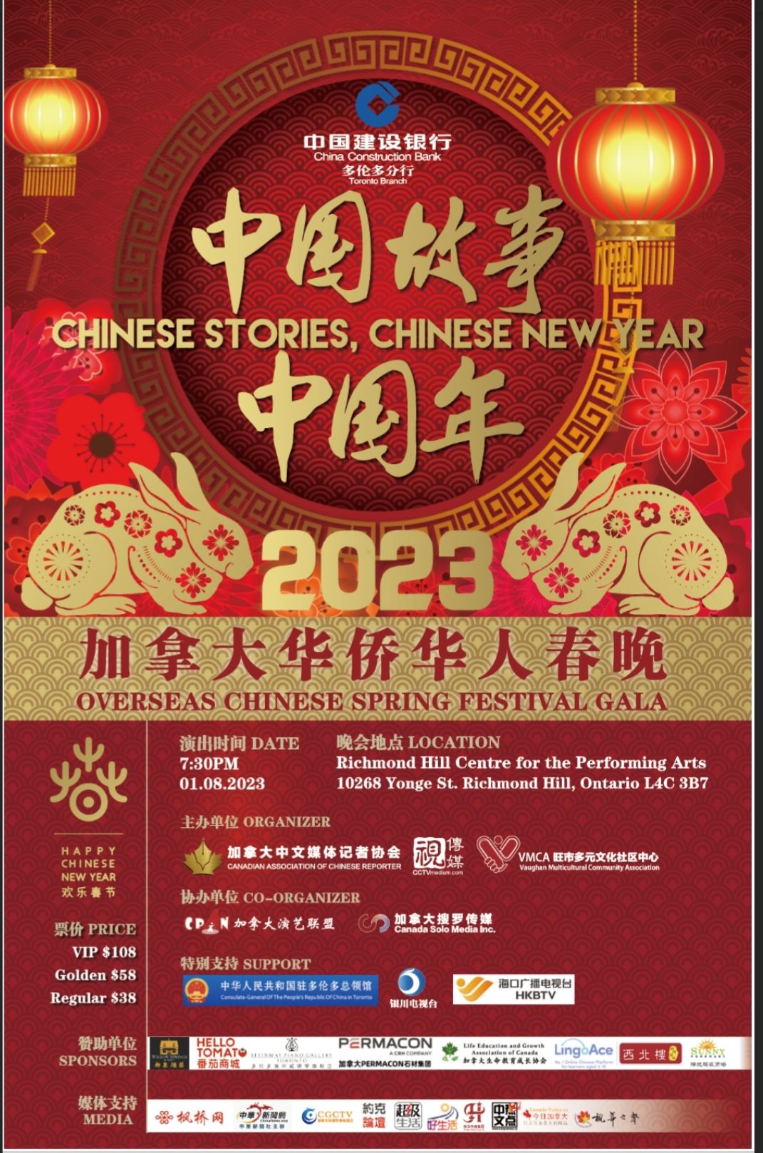 昨日,2023年1月8日晚7点30分(加拿大东部时间), 在多伦多列治文山市剧场(Richmond Hill Centre for the Preforming Arts),2023年<<中国故事中国年>>加拿大华侨华人春晚隆重上演。