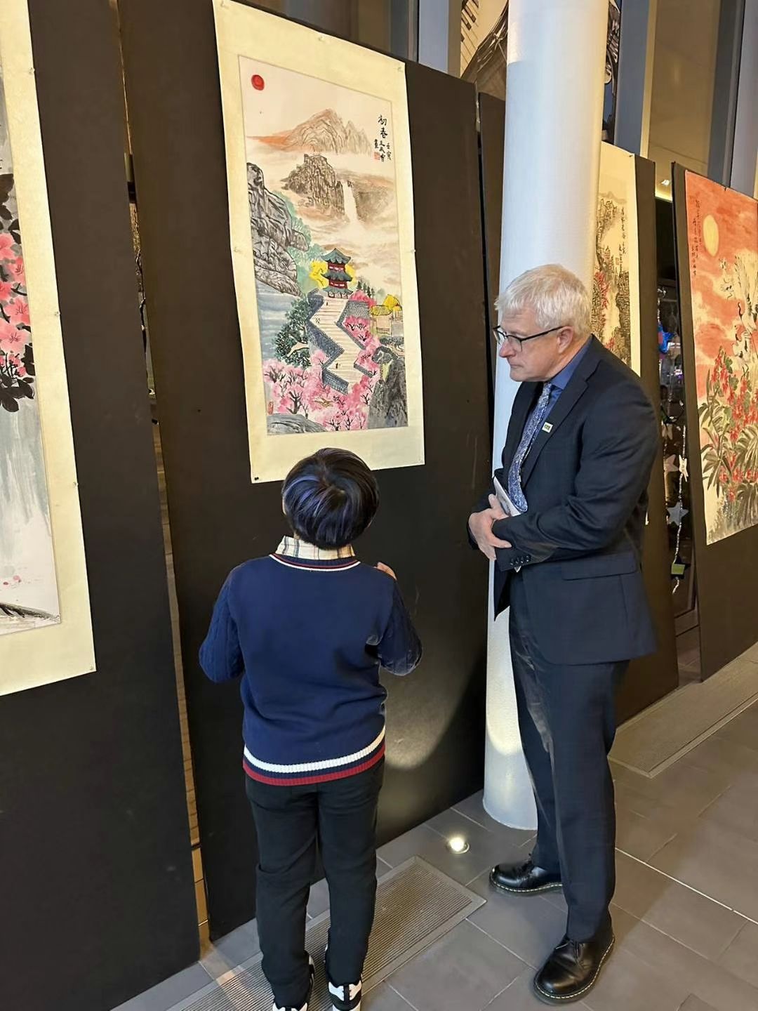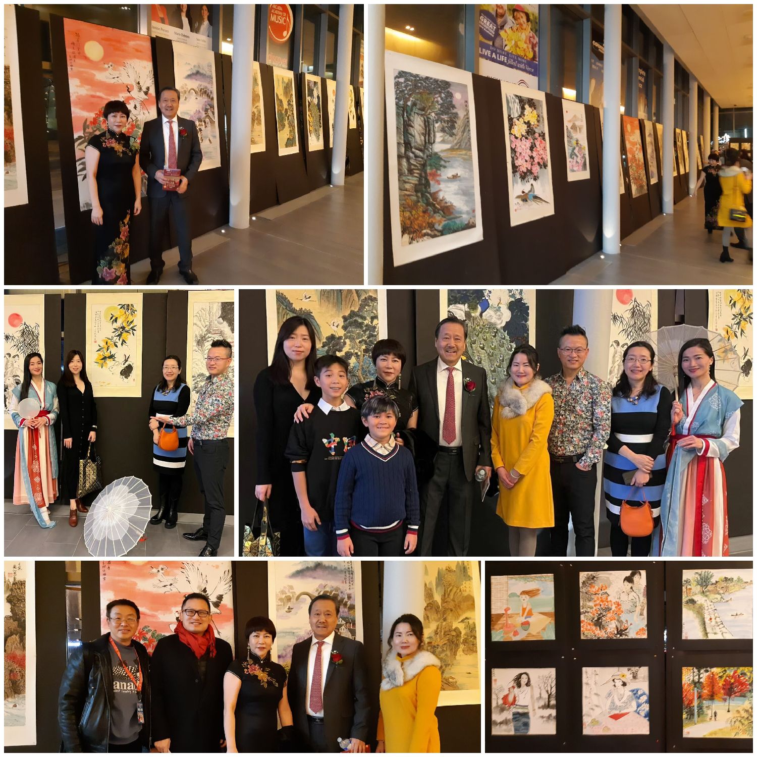 用艺术讲述中国故事,除了舞台上,除了摄影作品,今年<<中国故事中国年>>加拿大华侨华人春晚,还在现场还增设了《中国故事中国年》书画展,展出旅加知名国画家任娅及她的学生专为春晚主题而创作的系列中国元素作品。