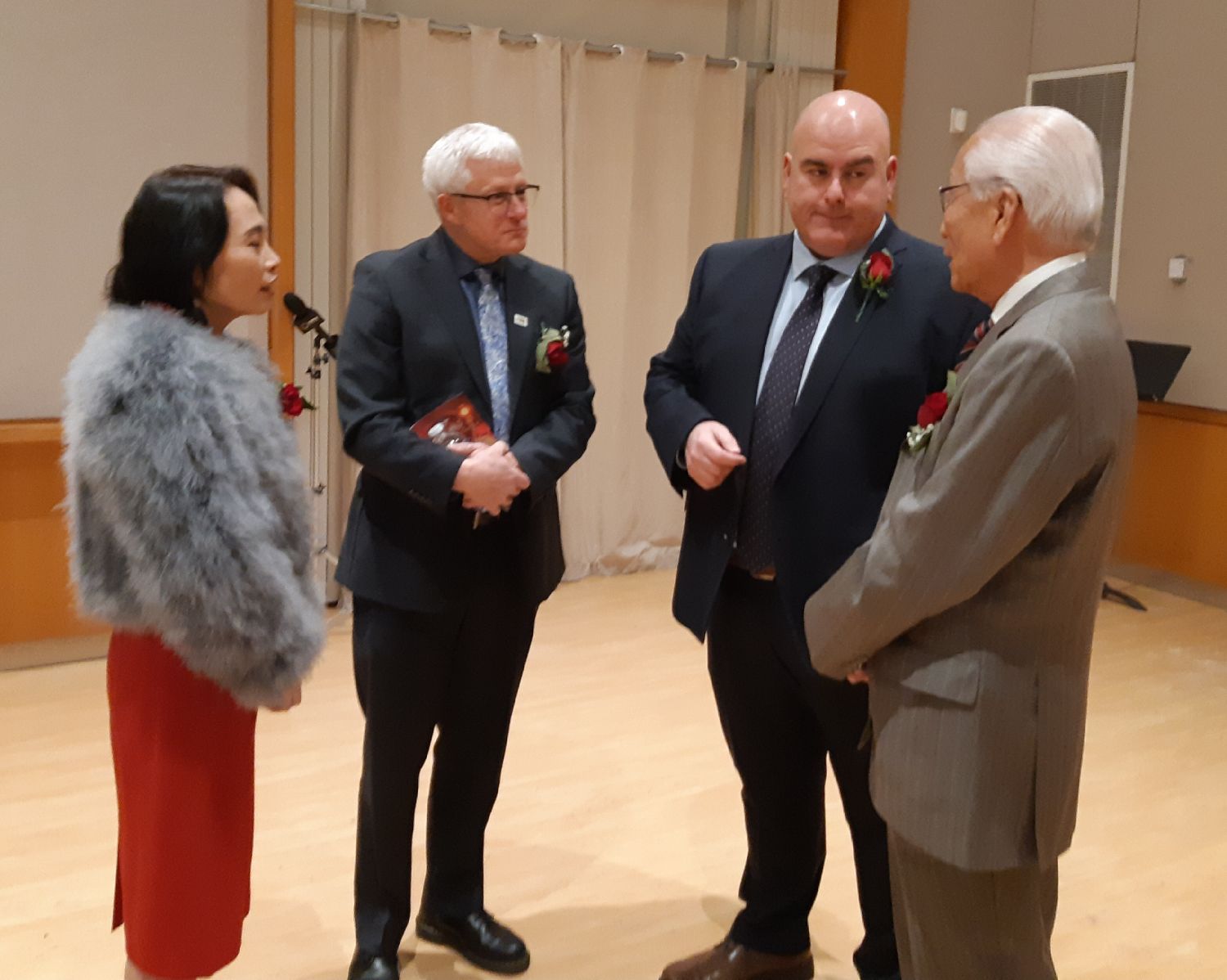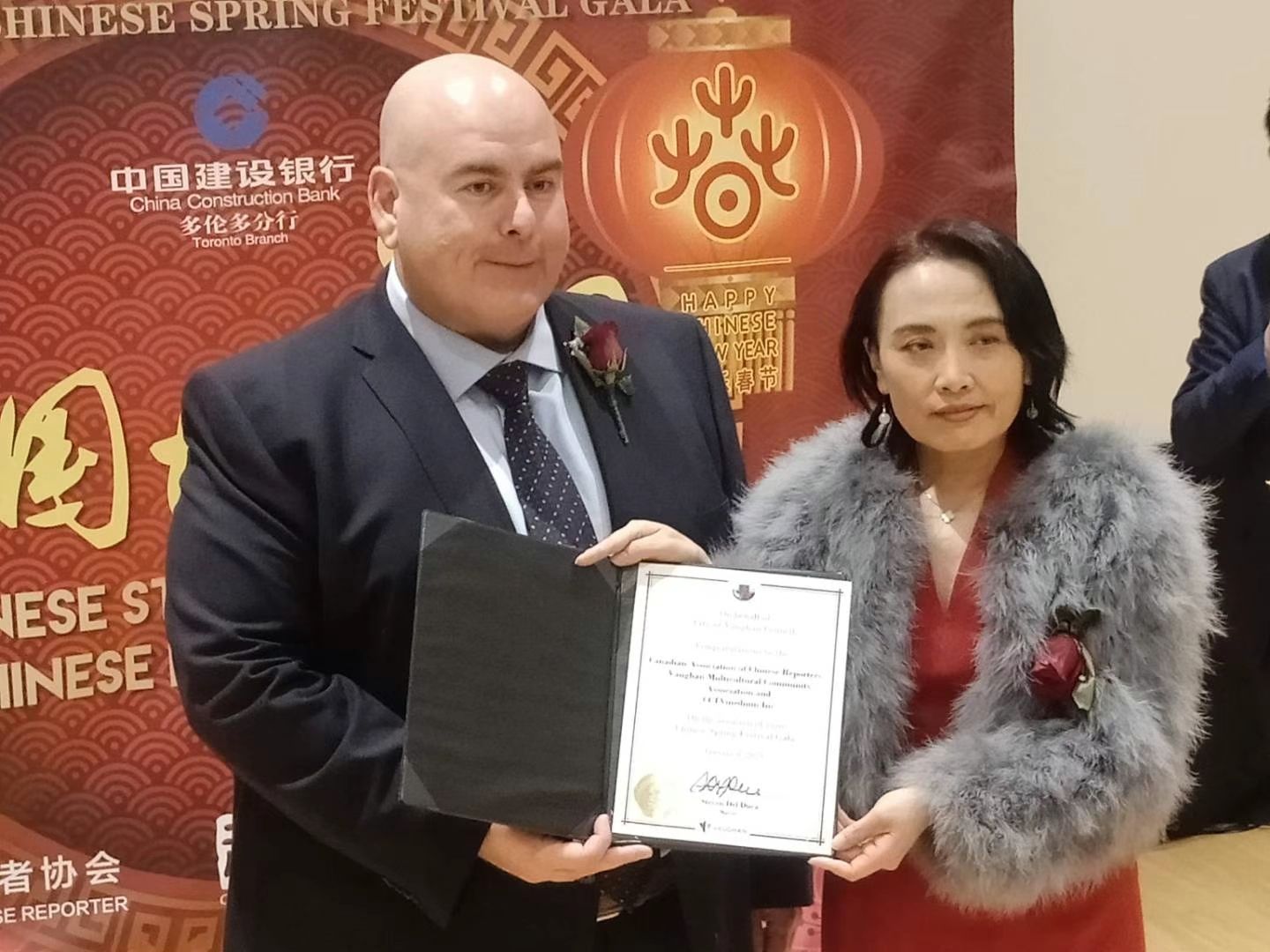 一些嘉宾也在酒会现场讲了话,除了表达应邀出席的感谢,也祝演出成功,祝福大家新年快乐。Steven Del Duca和David West两位当地市长的讲话特别激动和喜乐,异口同声地表达出因为地盘、占据地理优势幸运成为合作者的中奖般感动,直呼《中国故事中国年》千万不要换地方,“不要走不要走”, 表达今后每年都在他们城市办的强烈愿望。