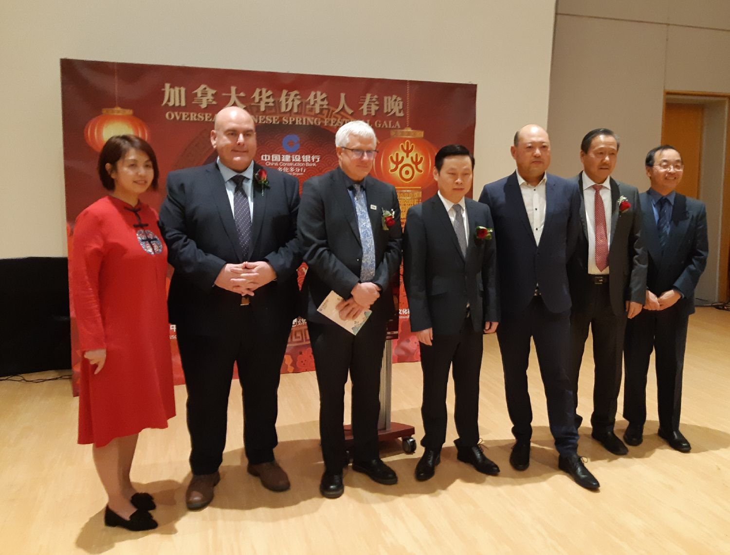 昨晚演出正式开幕前,主办方举办了《中国故事中国年》主题酒会,出席酒会的不仅有协会的“自己人”媒体朋友们,还有中加两国政要,多伦多社团相关领导,冠名赞助和投资商家。中国驻多伦多总领馆副总领事程洪波、中国建设银行多伦多分行总经理张哲、大多伦多Waughan市市长Steven Del Duca、Richmond Hill市市长David West、全加华人促进中国统一委员会大多伦多区主席陈炳丁、加拿大华人企业家联合总会会长水寿松、加拿大华人文化艺术团体联谊会主席张俭等等嘉宾出席了酒会。
