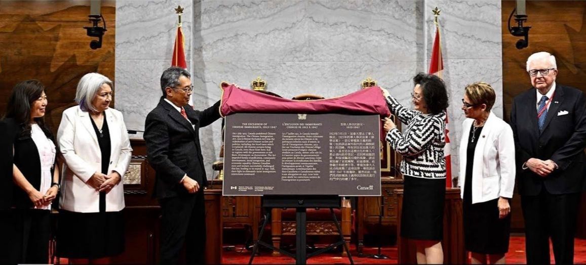 此前一天,加拿大联邦参议院于6月23日举行官方纪念活动,总督西蒙、参议院议长加涅(Raymonde Gagne)、联邦国际贸易部长伍凤仪(Mary Ng)等出席,并为《排华法案》100周年纪念牌匾揭幕。