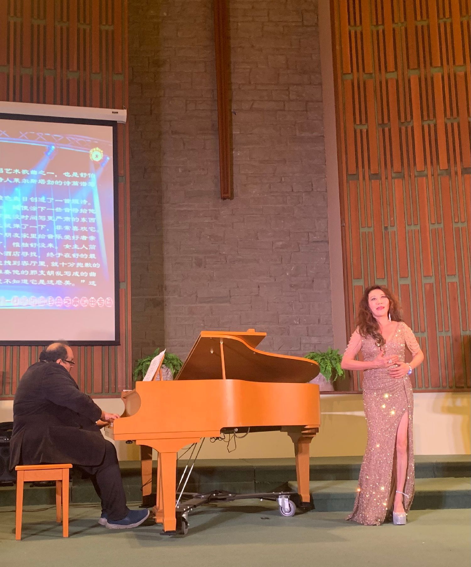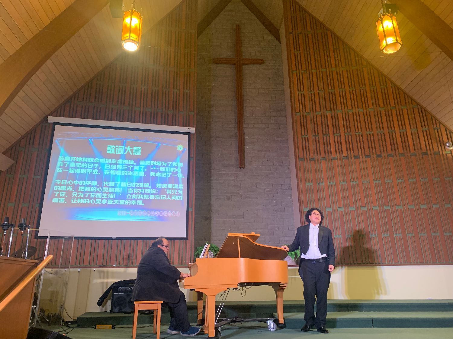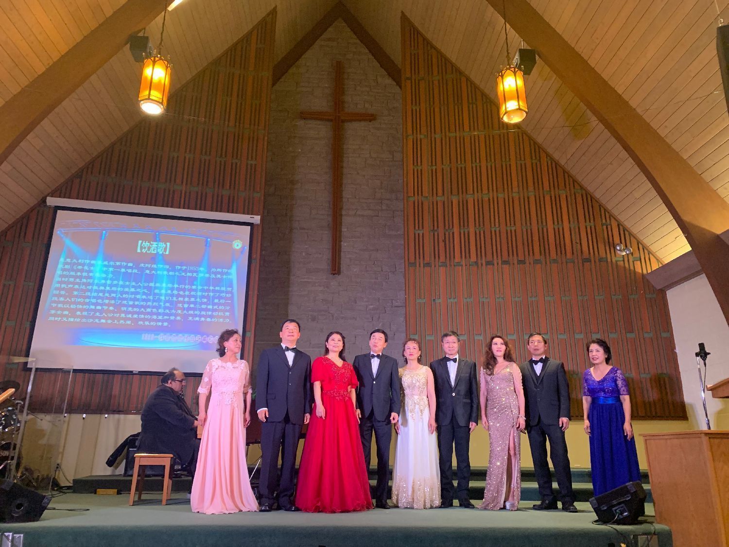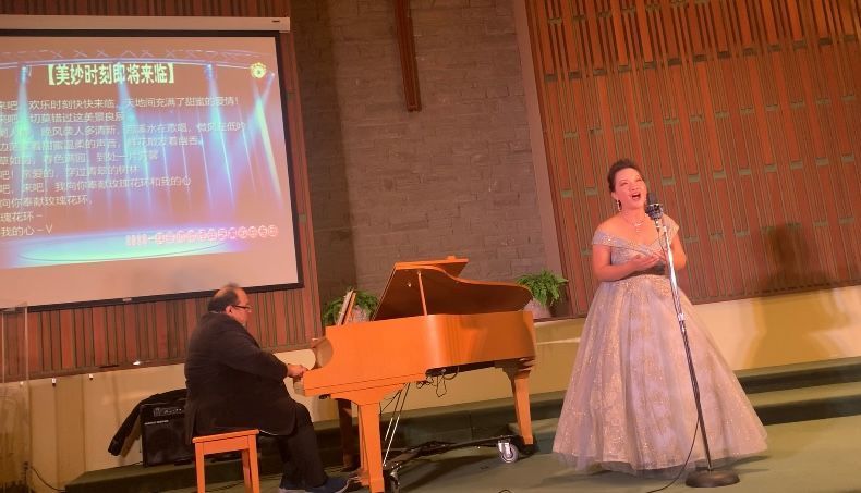 西洋音乐classic风格,钢琴现场伴奏,演唱者的演唱 ---- 教堂晶透圣洁的灯光下,没有大型舞台台上台下带给观众的距离感及灯光变换、布景的炫烁感,反而带给观众静态中欣赏音乐润心的强烈舒适感、圣贵感,清雅、圣洁、朴素中透出华丽。