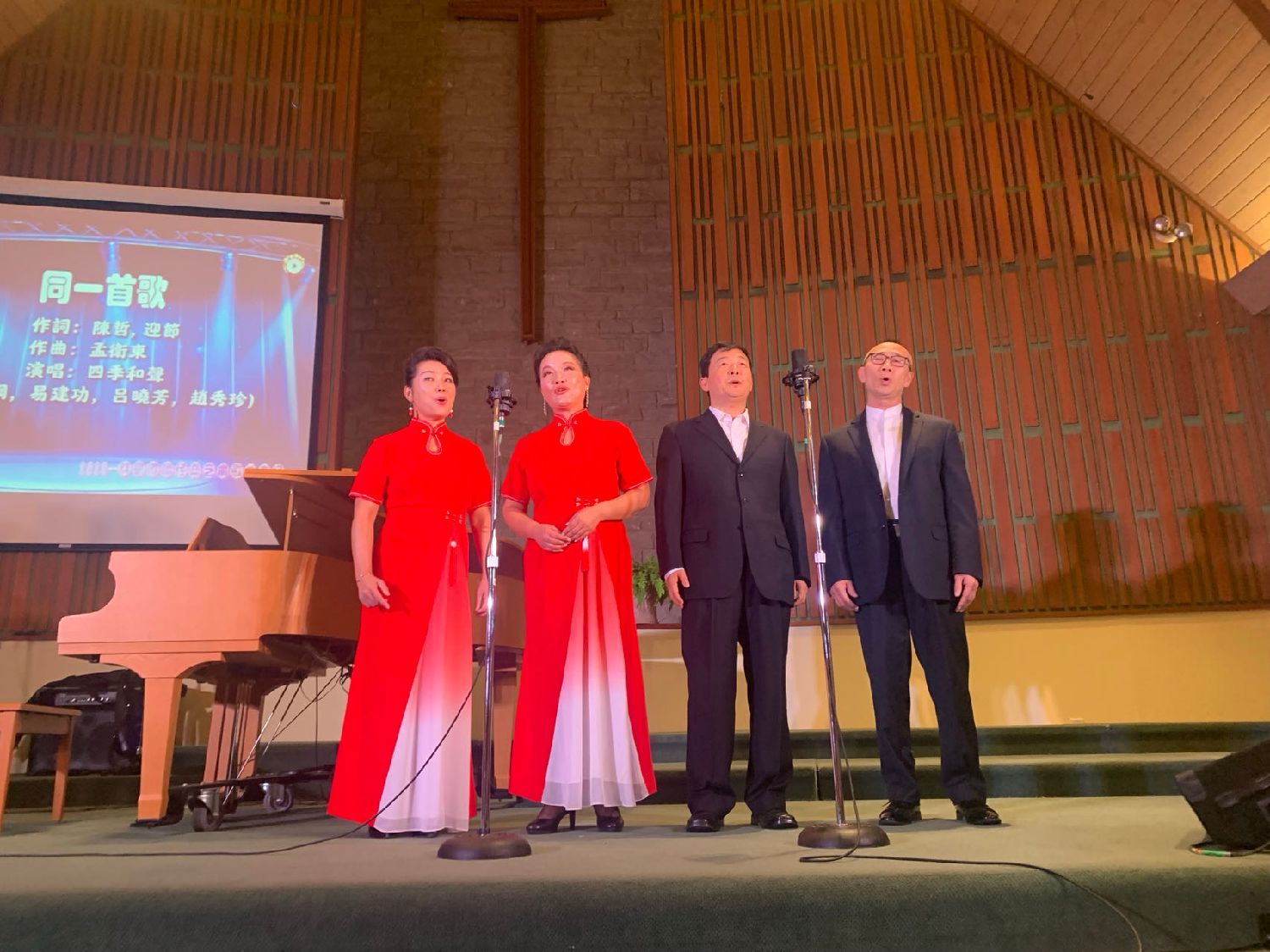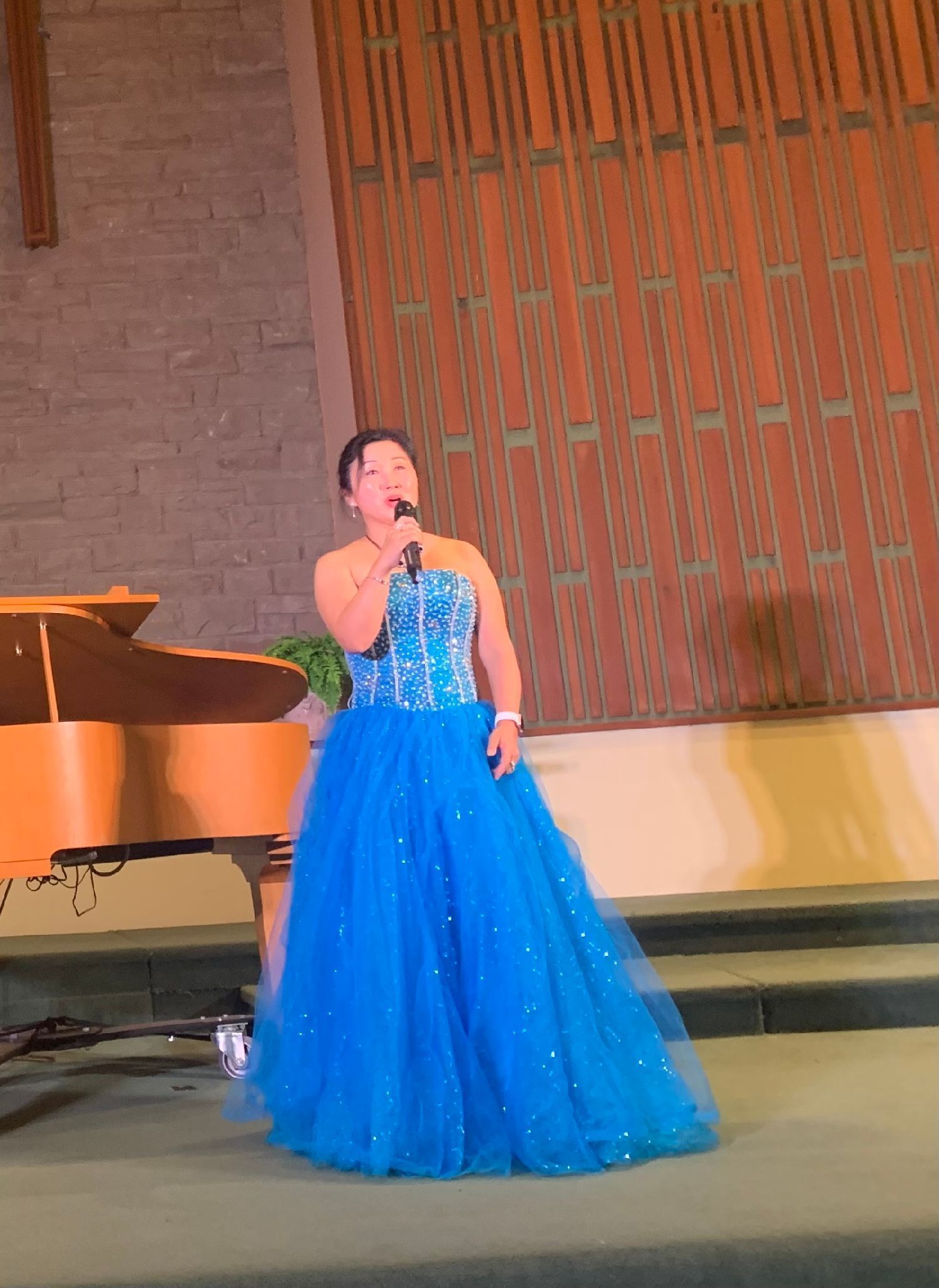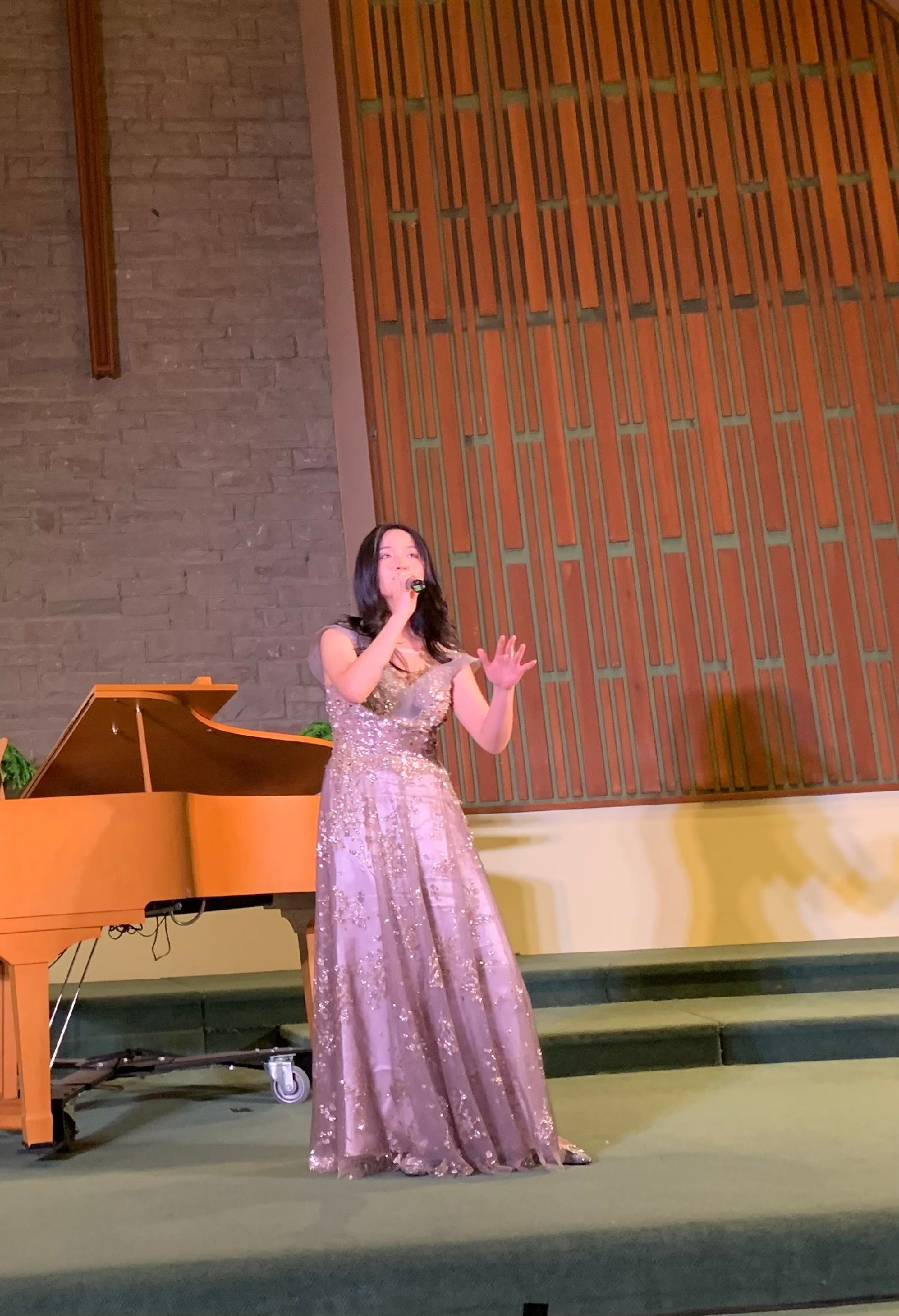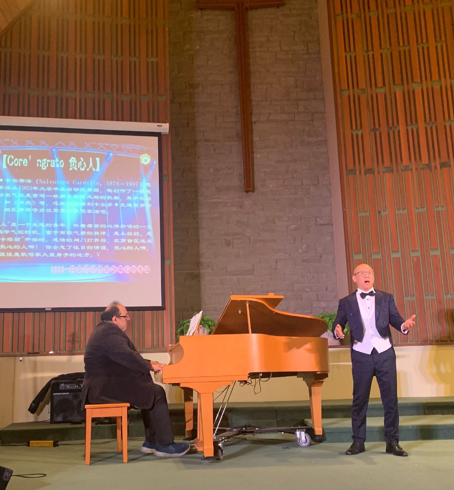 西洋音乐classic风格,钢琴现场伴奏,演唱者的演唱 ---- 教堂晶透圣洁的灯光下,没有大型舞台台上台下带给观众的距离感及灯光变换、布景的炫烁感,反而带给观众静态中欣赏音乐润心的强烈舒适感、圣贵感,清雅、圣洁、朴素中透出华丽。