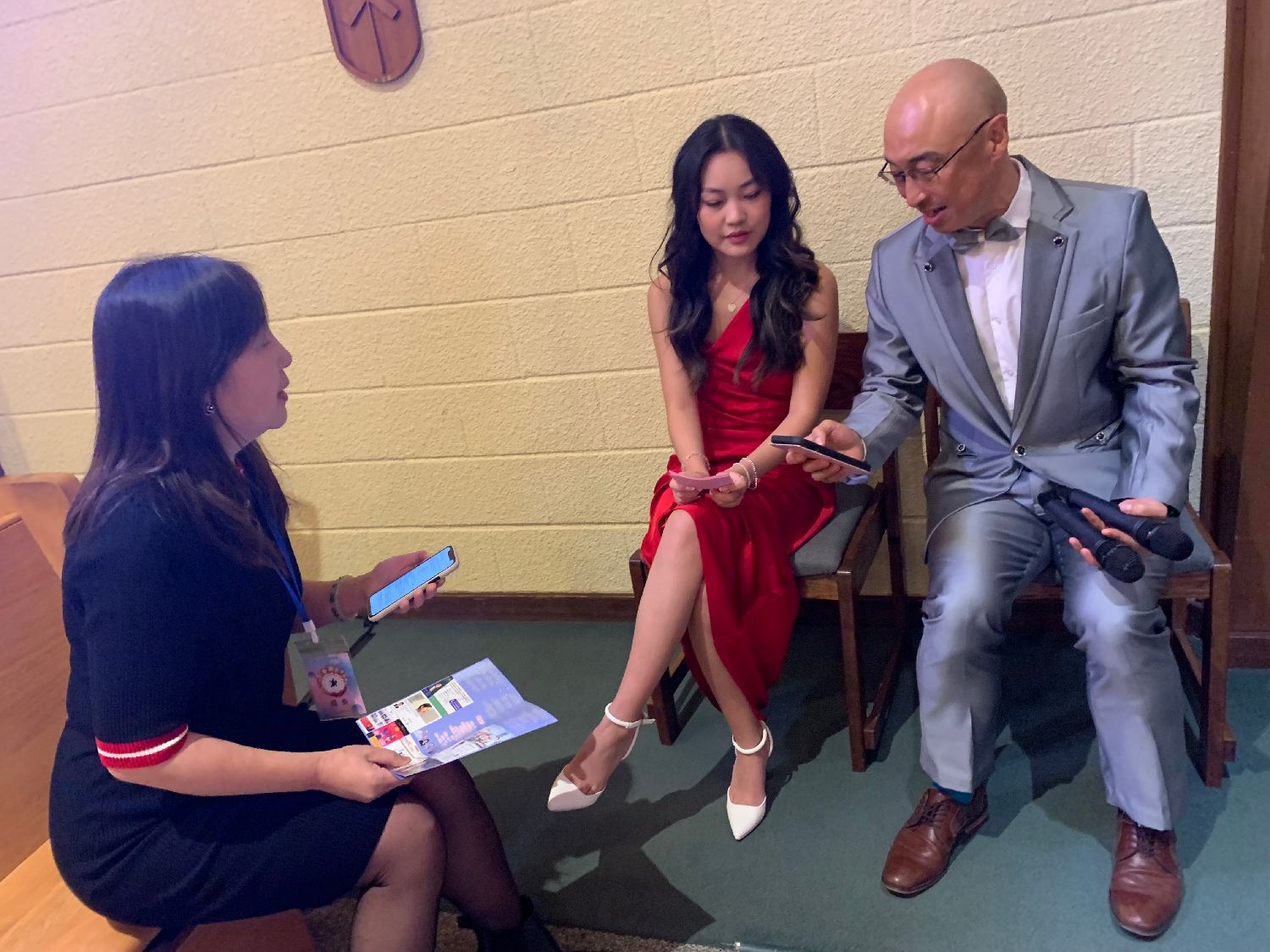 红豆和两位主持人演出前还在讨论主持词