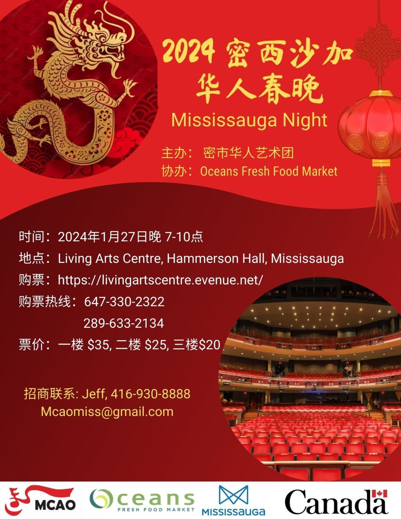 这台春晚将于2024年1月27号(星期六)晚七点在密西沙加Living Arts Centre剧院隆重上演。