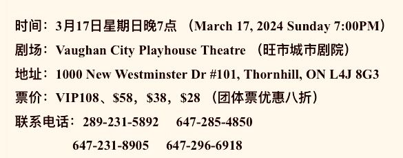 网上购票链接:https://tickets.cityplayhouse.ca/event/655:295