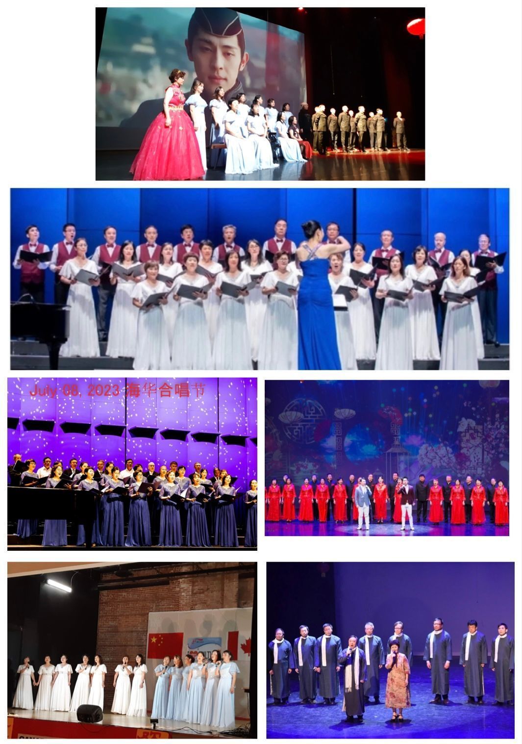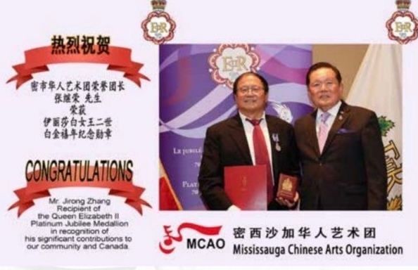 而在2023年的“多元文化娱乐日”,联邦议员胡子修莅临现场,他肯定和赞扬了密西沙加华人艺术团自2005年成立以来,用文艺的形式为本市、为社区所做出的巨大贡献,并代表加拿大联邦向本艺术团47位十年团龄以上的资深团员们颁发了纪念奖,这对于获奖者们来说是崇高的荣誉,也是一种鼓励。获奖者中包括了11位合唱团演员,他们是:张继荣、乔幼庆,庄亚辉,卜思奇,黄文达,严海明,王跃刚,陈红,何丽施(Alice),陈丽贞(Philo)和严小波。