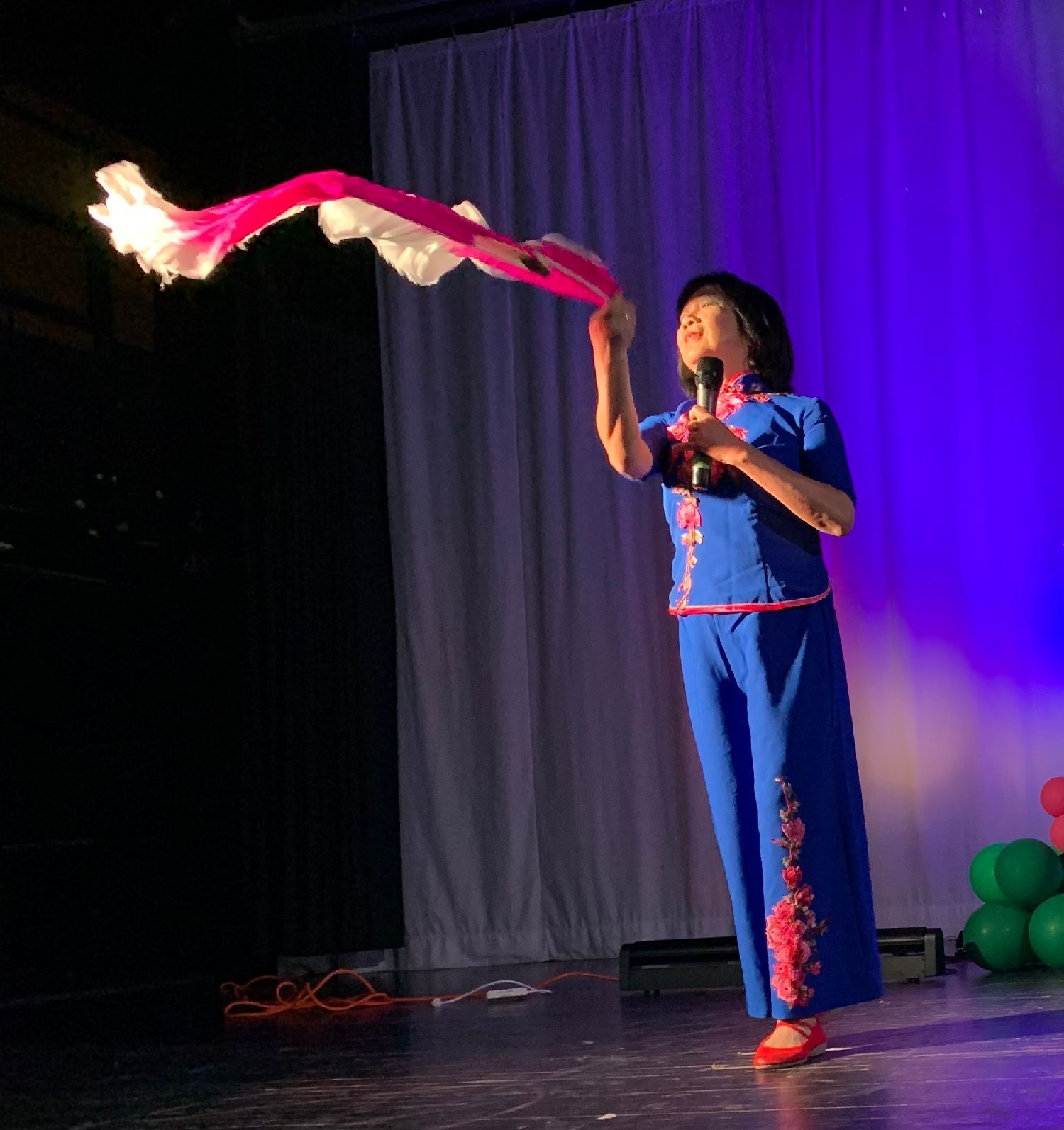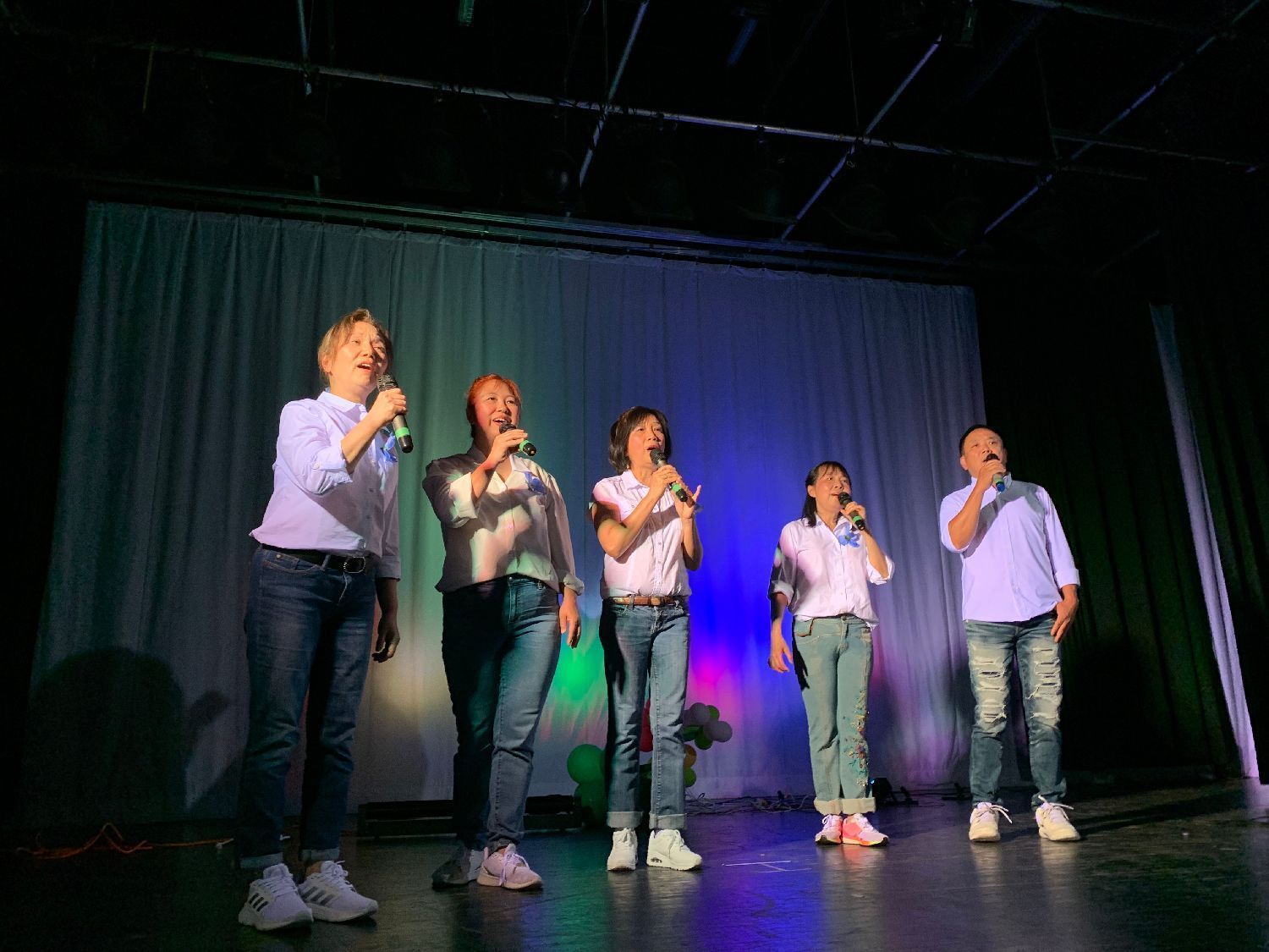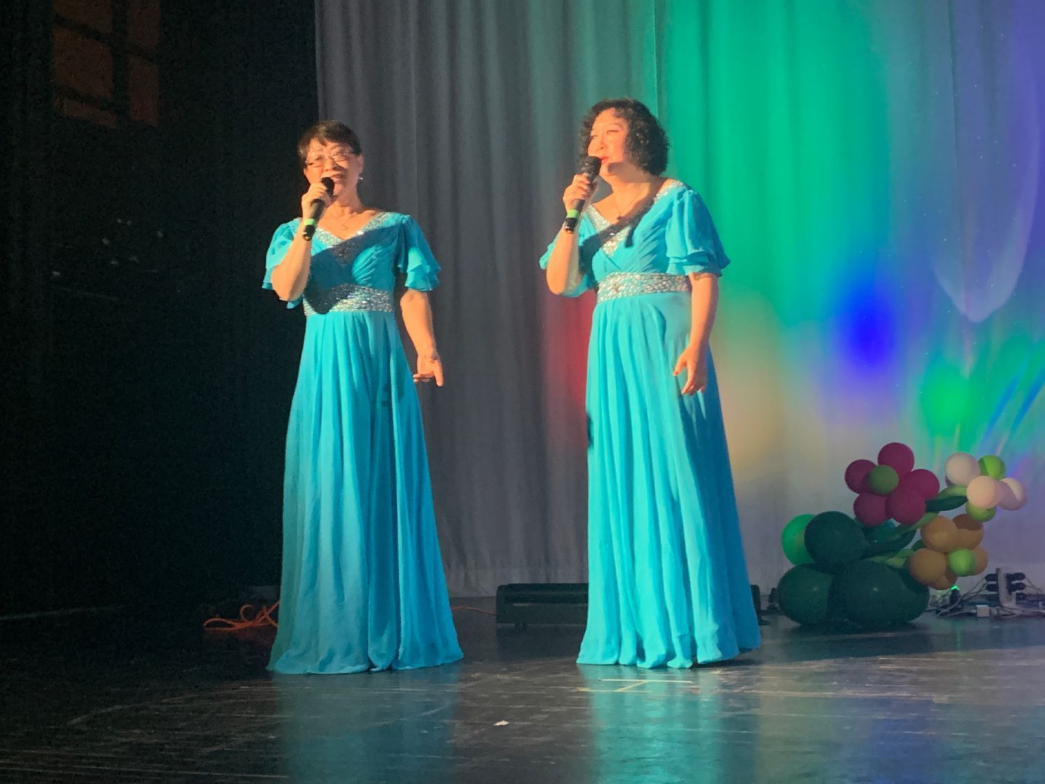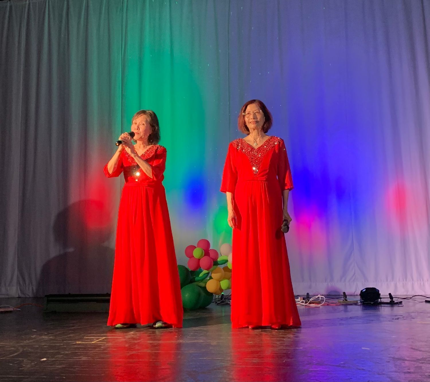 这张早期演出照片,左边两位是密市华人艺术团建团时期元老级老歌唱团员、东北大学高级工程师陶继华、凌茜夫妇,现在已80多高龄,早已淡出舞台。在2022年一次户外活动中,两位长者的回访和讲话,表达出他们对艺术团怀的深情和厚望。当时凌茜女士还在陶老手风琴伴奏下,给大家中英双语演唱了他们精心挑选的曲子《友谊地久天长》。他们的资性和艺术气质,和他们的讲话,成为艺术团关于歌唱的感人印象和深刻的记忆。