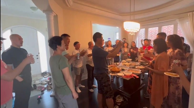 演员们在演出后的第二天,聚会庆祝演出成功,一同唱起“