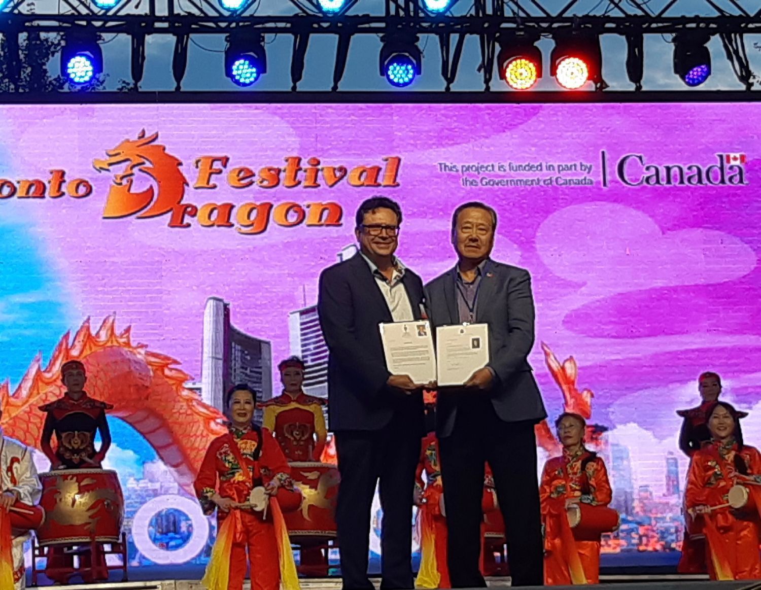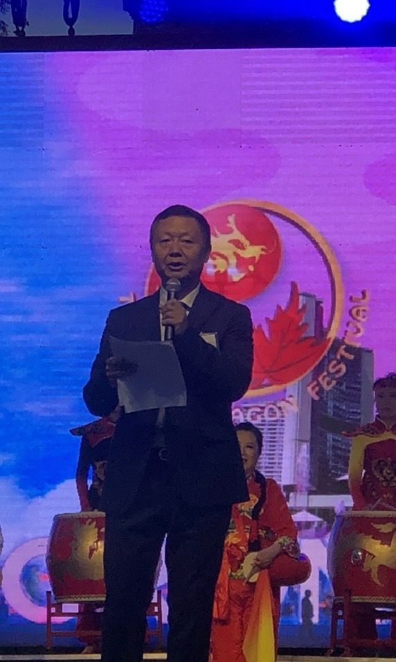加拿大联邦国会议员马万里 (Majid Jowhari)代表加拿大总理 Justin Trudeau 致辞并赠送贺信,龙文化节主席、总策划、