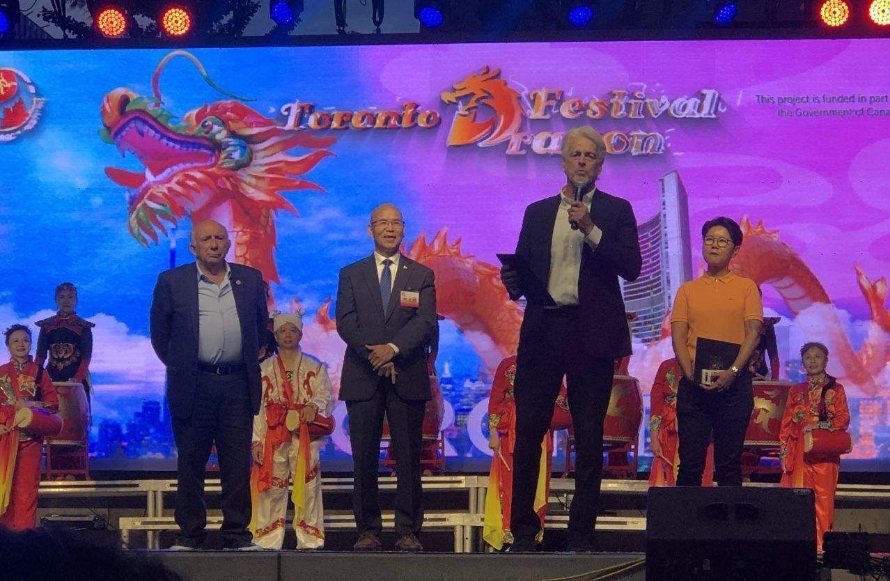 参加今天龙文化节开幕式的嘉宾有中国驻多伦多总领事馆总领事罗伟东、
