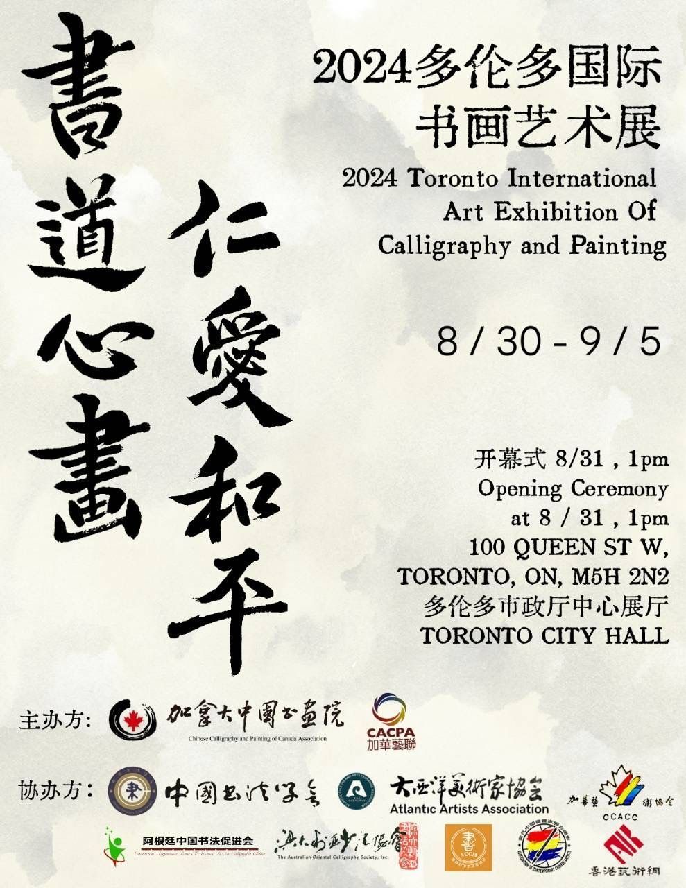今年,在市政厅内,还有《2024多伦多国际书画艺术展》将于明天下午1点开幕。