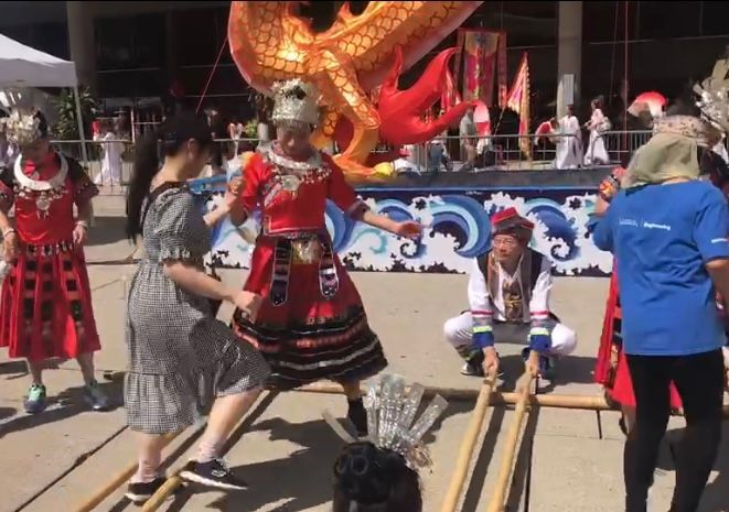 密西沙加市华人艺术团带来的竹竿舞,以它的民族特色、