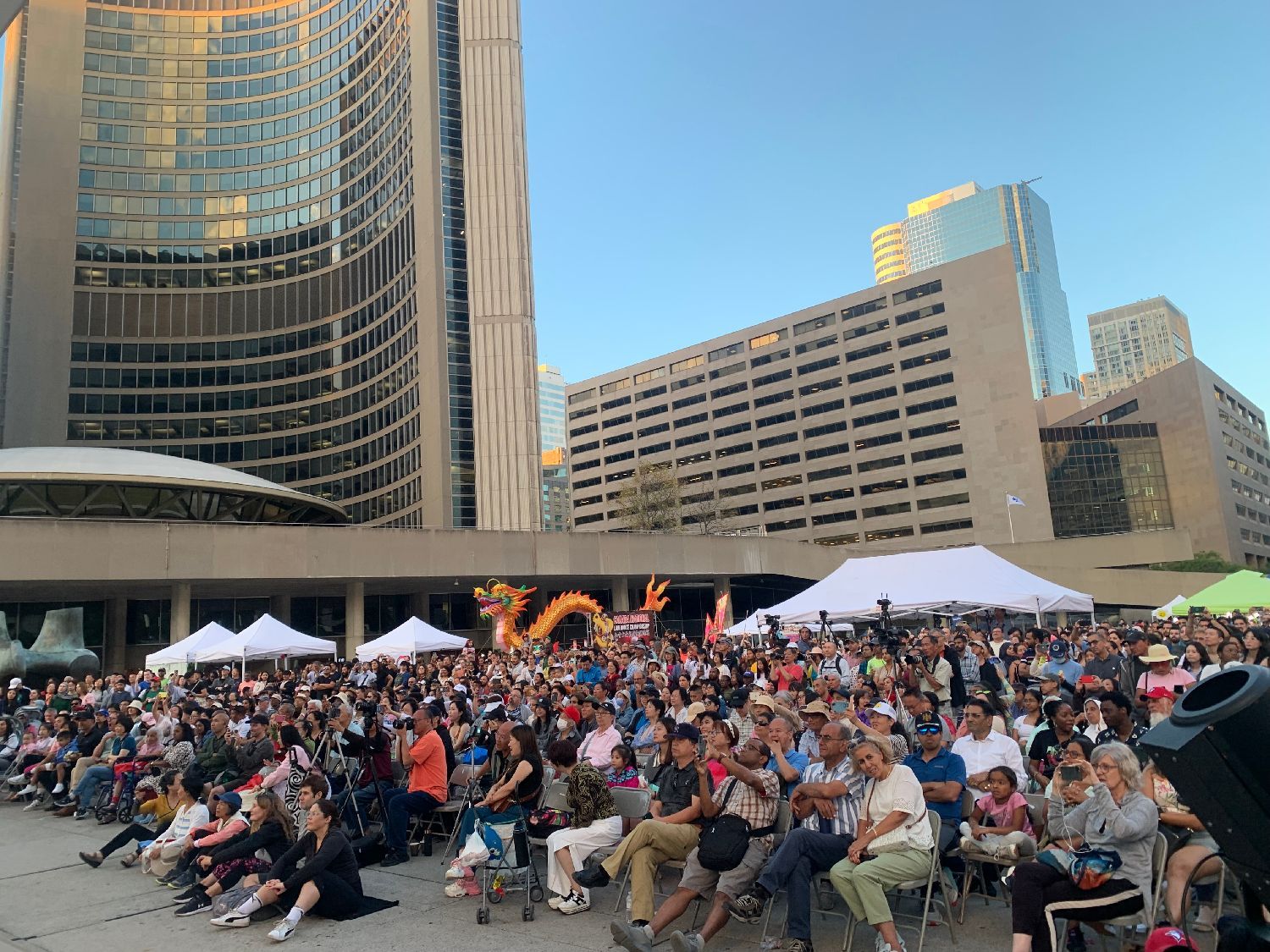 9月1日晚,在多伦多市政厅广场(Nathan Philips Square),由加拿大华人文化艺术团体联合会(