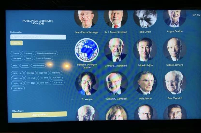 博物馆里可以检索到历届获奖者,看到了屠呦呦