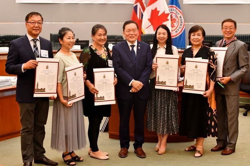 今年6月22日,团长卜思奇,三位前任团长杨晶、栾雯和刘霞,及团委委员周陈秀芸喜获前加拿大联邦参议员胡子修颁发的传承奖。
