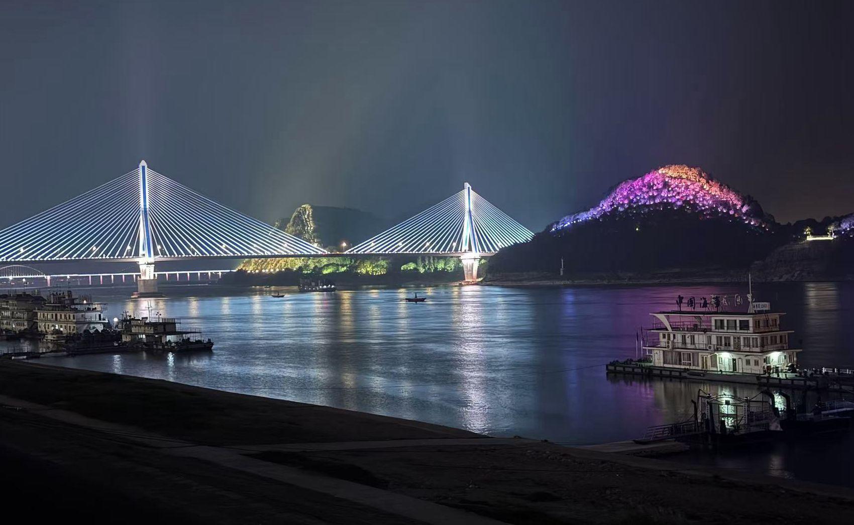 入夜,宜昌的长江沿岸,灯火璀璨;长江大桥,瑰丽又雄伟。
