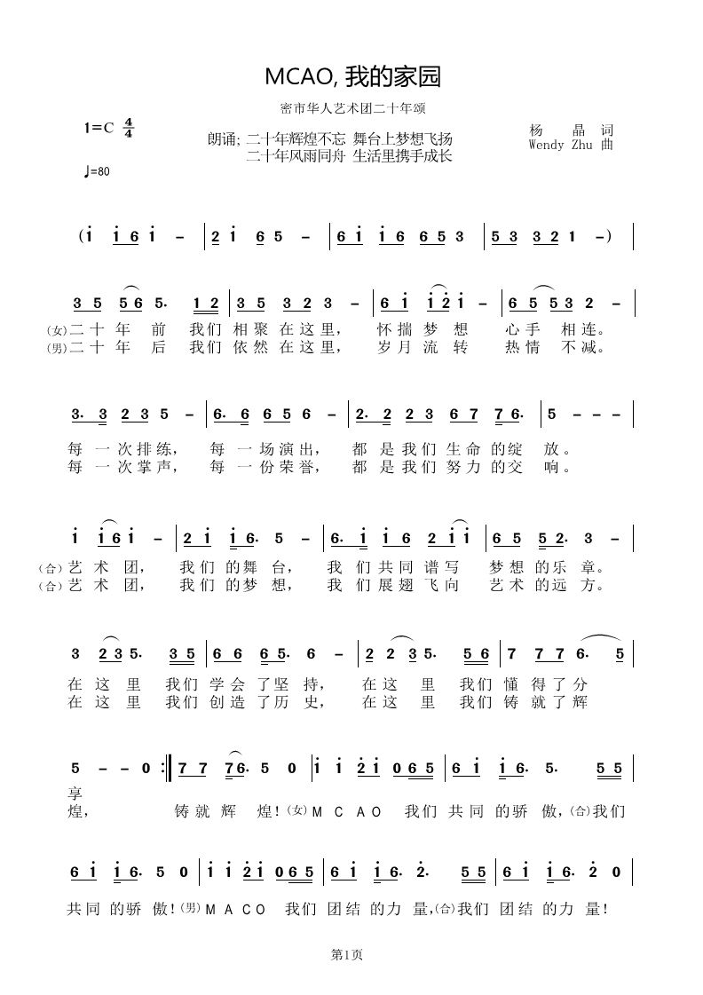 “二十年前我们相聚在这里,怀揣梦想,心手相连;二十年后我们依然在这里,岁月流转,热情不减。”(《MCAO,我的家园》歌词)