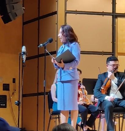 音乐会冠名赞助摩石建筑(Benestone Construction)的代表陈丹蕾女士致辞