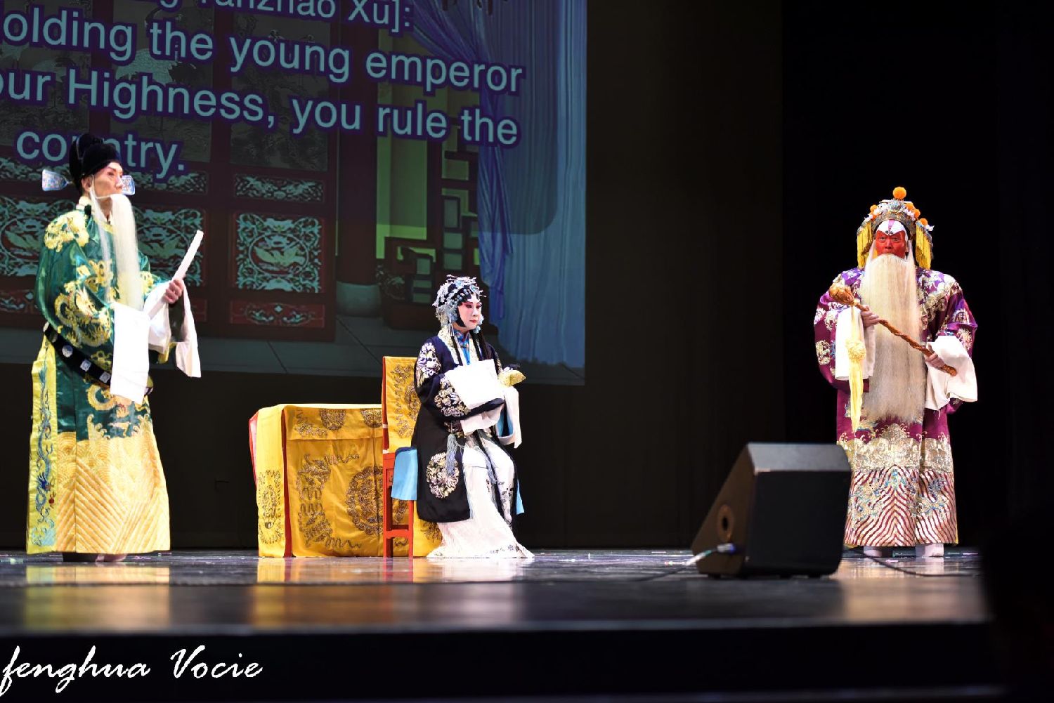 特别值得一提的是,此次演出所有唱腔对白台上都有中英双语字幕,