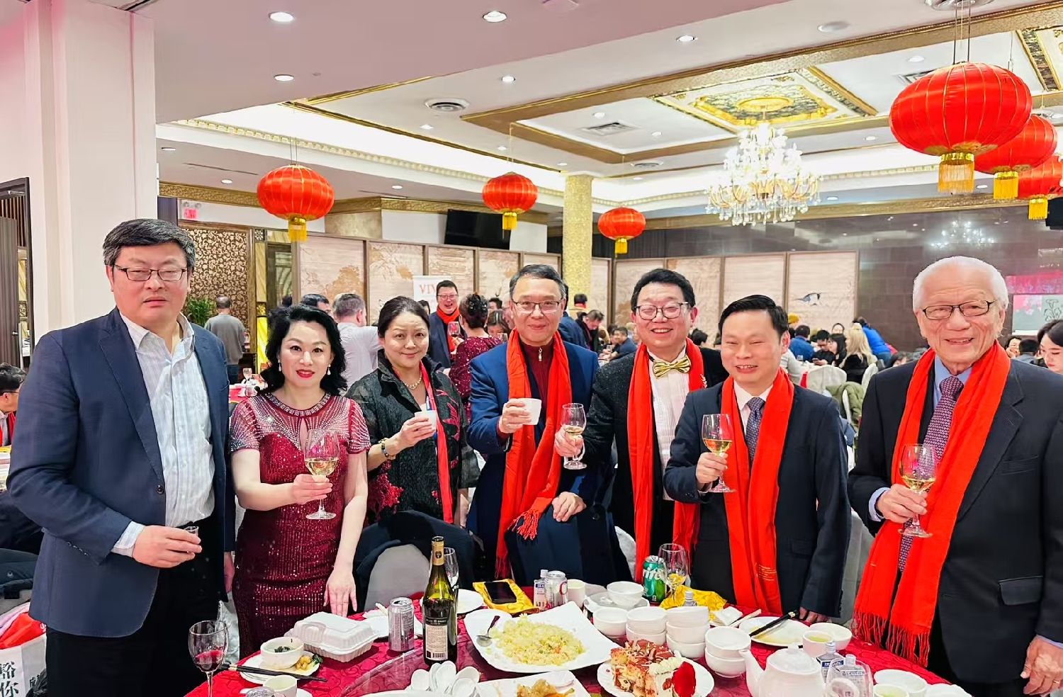 当天的新年晚宴,尽管遇到了20年不见的大雪,但还是高朋满座,嘉宾如云。上台致辞的嘉宾还有加中地产基金会主席孙志峰,鲁商联盟多伦多地区主席、阳光集团总裁陈凯,加拿大山东大学校友会创会会长、加拿大白求恩医学发展协会常务副会长周源、协办方代表加拿大山东总商会会长杨殿明,冠名赞助商、加中山东总商会执行会长、齐鲁同乡会执行会长、天一石业总裁未鹏,多伦多知名大律师陈丙丁、加拿大建筑总会会长DAVID杨、加拿大深圳社团联合总会主席齐佳女士、加拿大华人文化艺术联合会主席张俭、加拿大华人同乡会联合总会执行主席邢纪元、多伦多华人团体联合总会副主席刘莹、加拿大高校校友会联合总会会长铁木尔、理事长贾正杰、加拿大高校校友商盟会长赵东山、加拿大工商银行代理总裁兼CEO陆辕、多伦多华裔教授协会副会长辛宝华教授等。