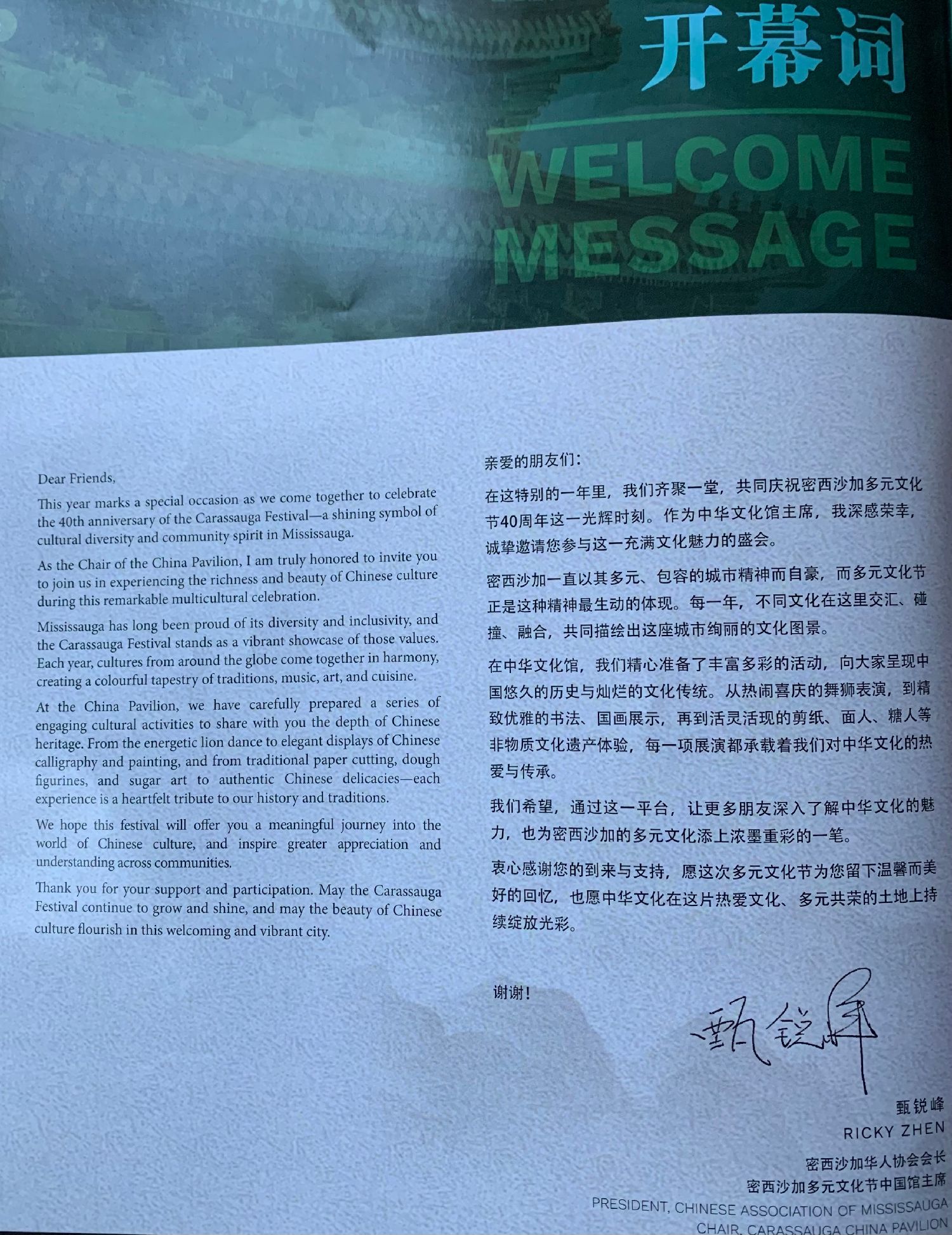 密西沙加市(Mississauga)多元文化节(Carassauga)中国馆的活动一直由当地华人协会承办,