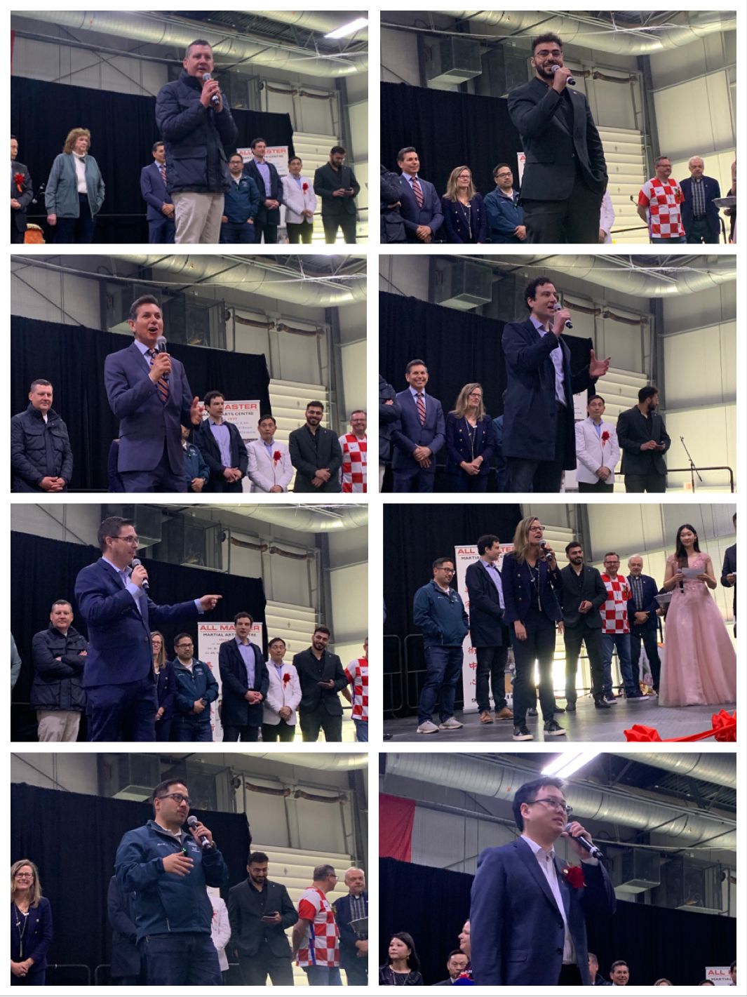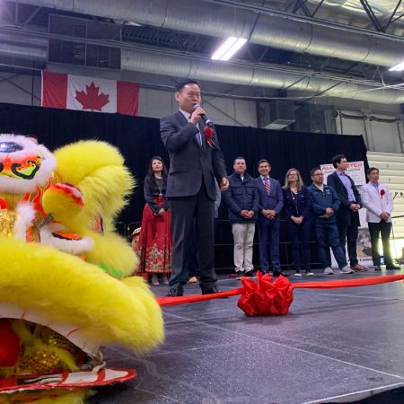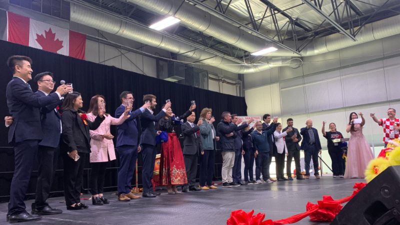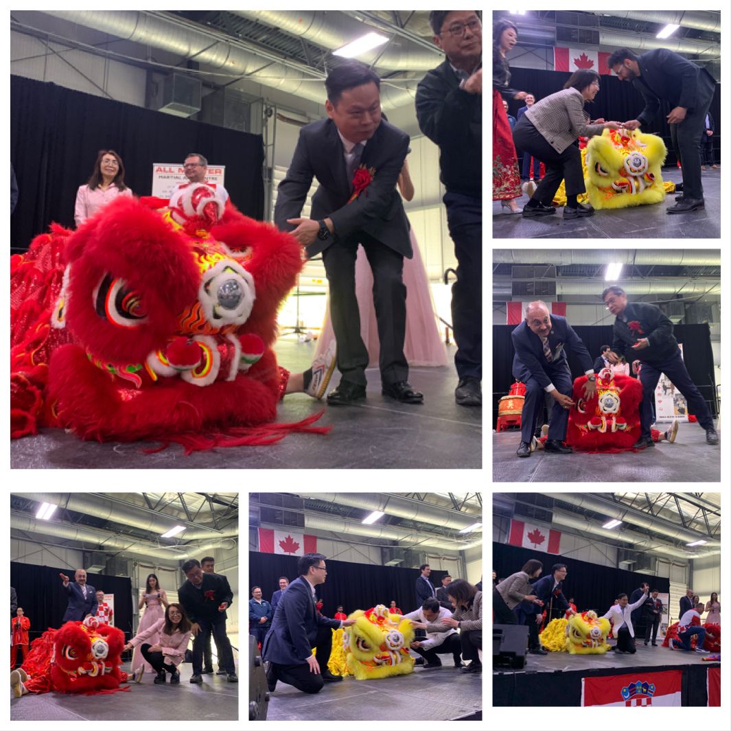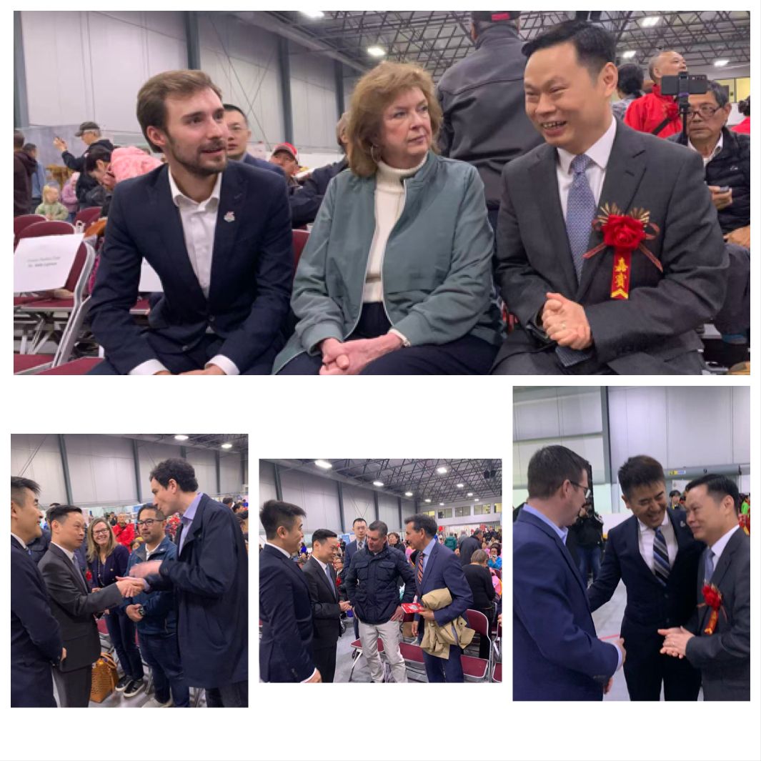 中国驻多伦多总领馆副总领事程洪波、领事孙世浩;Major of Mississauga Carolyn Parrish, Carasssauge主席Mr. Marek Ruta, Mississauga Central-Member of the Parliament elected Mr. Fares AI Soud, Member of Provincial Parliament Mr. Sheref Sabaway, MP-Mississauga-East-Cooksville Peter Fonseca, Deputy Major Matt Mahoney、 John Kovae, Mississauga City Councillor Mr. Joe Horneck(Ward6)、Mr. Alvin Tedjio(Ward2)、Ms. Chris Foneca(Ward3),及密市商会副主席Pierre Chen。