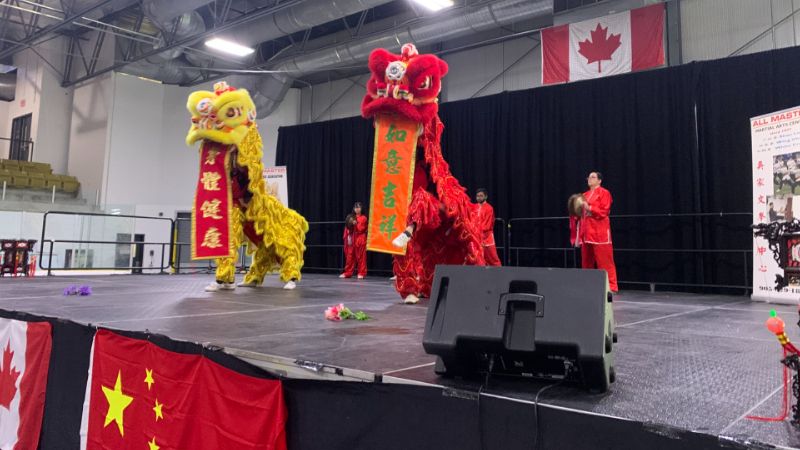 开幕仪式上有特别具有中国特色的狮子点睛环节,然后是舞狮表演。