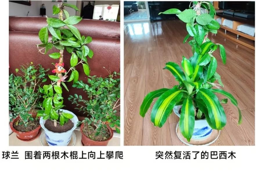从两棵巴西木的死而复活,悟出了一个道理:即使它的叶子干枯掉落,根系腐烂,但只要枝干依然健壮、新鲜,及时救治,精心管理,它依然能重新萌发新根,死而复活!不能被它的表象所迷惑,更不该轻于放弃。植物用自己的方式告诉我们,生命的韧性超乎想象。养花的过程充满了未知和期待,正是这种不确定性,让生活变得更加有趣。如今,这两棵复活的巴西木茁壮成长,第一棵枝叉复生,从幼苗已长到与我比肩;后买的也长得碰上房顶,花剑抽出80公分,即将开花。看到这些重新焕发生机的植物,不禁联想到一些失落者,无论身处何处,你们都要顽强地适应环境,像这些花儿一样,在逆境中扎根,渐渐活出一种自信的人生。